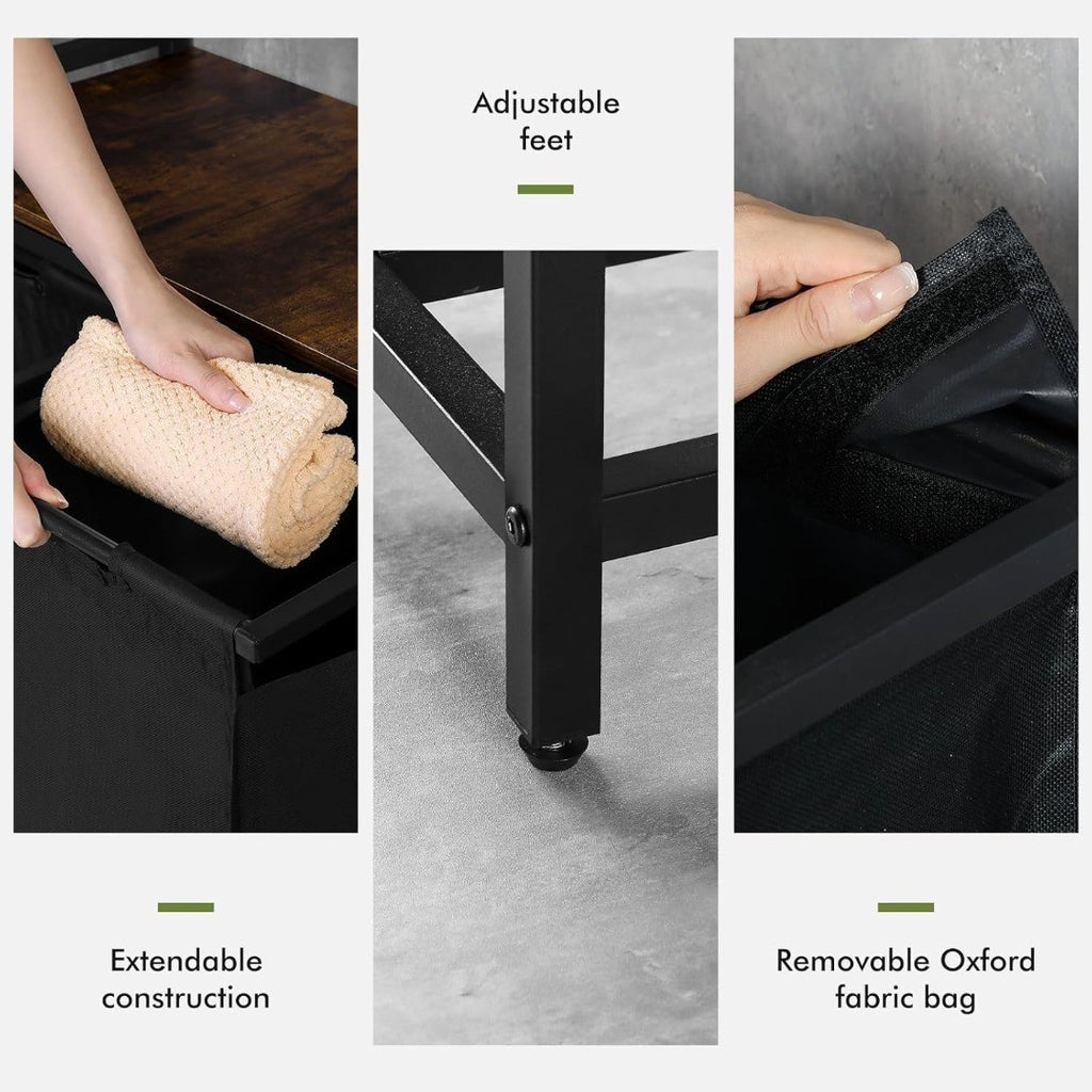 - 【With side pockets and shelves】The laundry bin is equipped with side pockets for socks, underwear or rags, etc., which are very practical. The integrated shelf prevents water from entering the Oxford bag underneath and the vintage colours are very aesthetically pleasing.