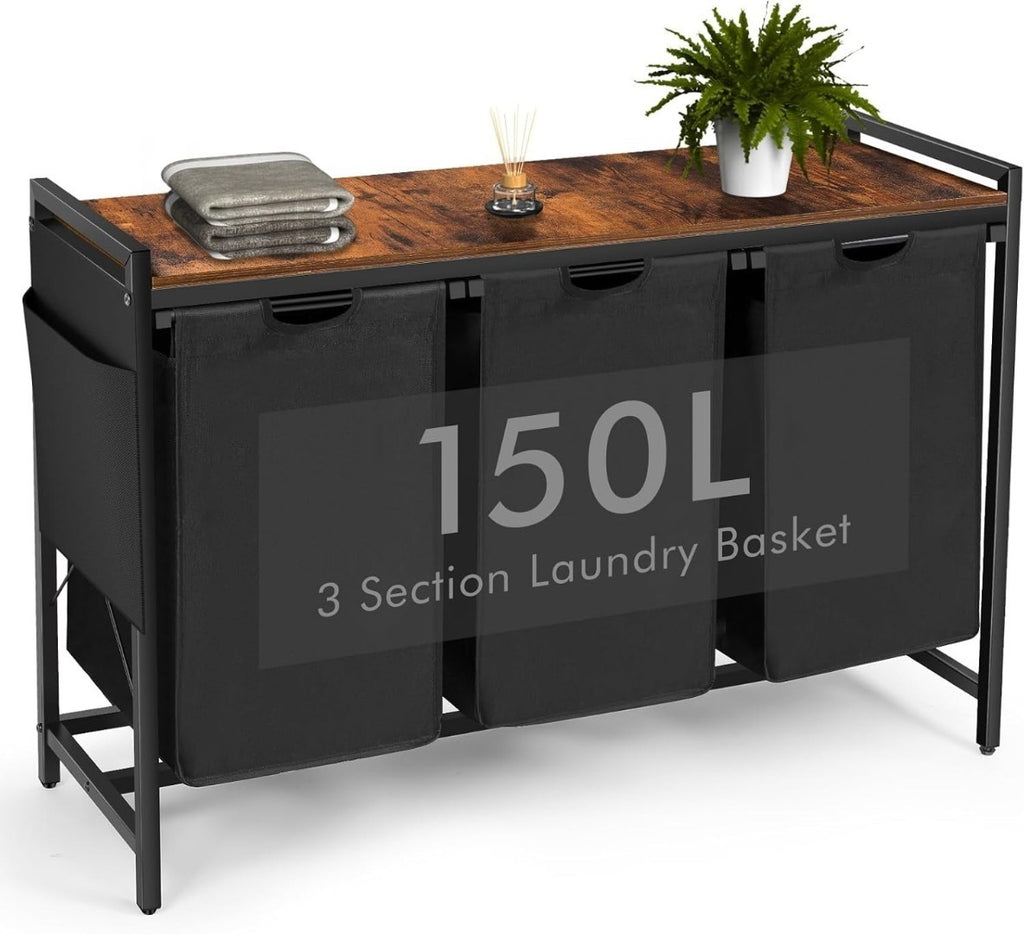 - 【3 compartments, larger capacity】The laundry basket is divided into 3 compartments with a total capacity of 150 L (3 x 50 L), in which you can sort and store all kinds of clothes. Compared to other brands, it has a larger capacity and a better price-performance ratio.