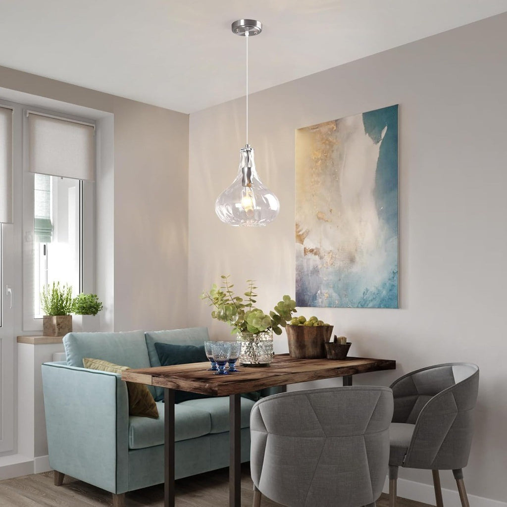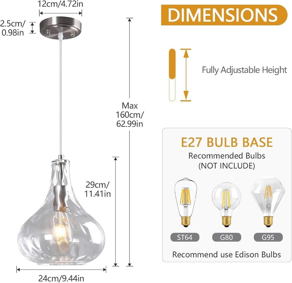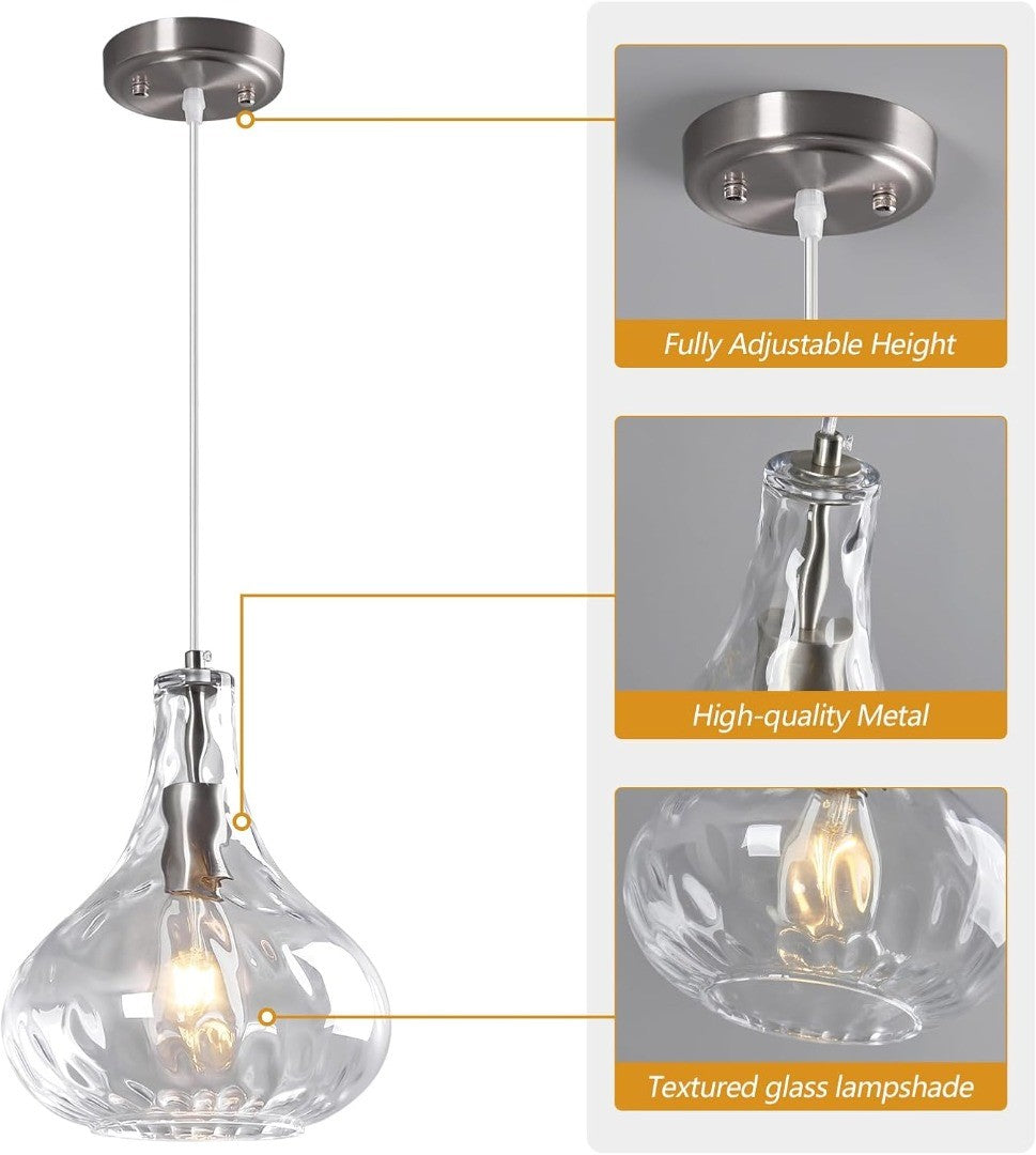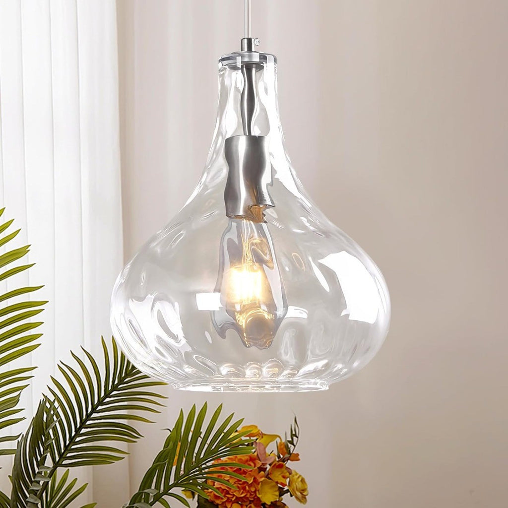 Modern Pendant Light with Hammered Glass Shade 24cm Clear/Silver