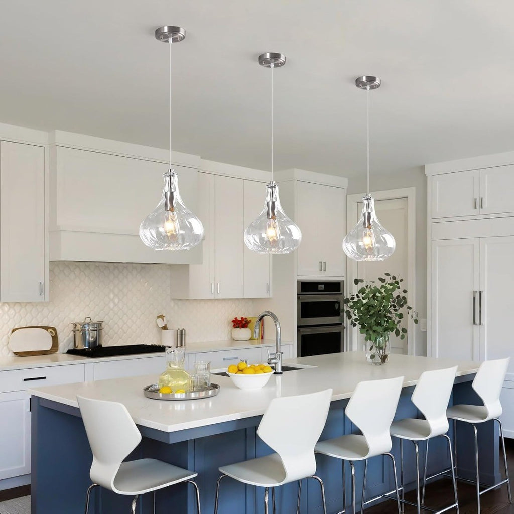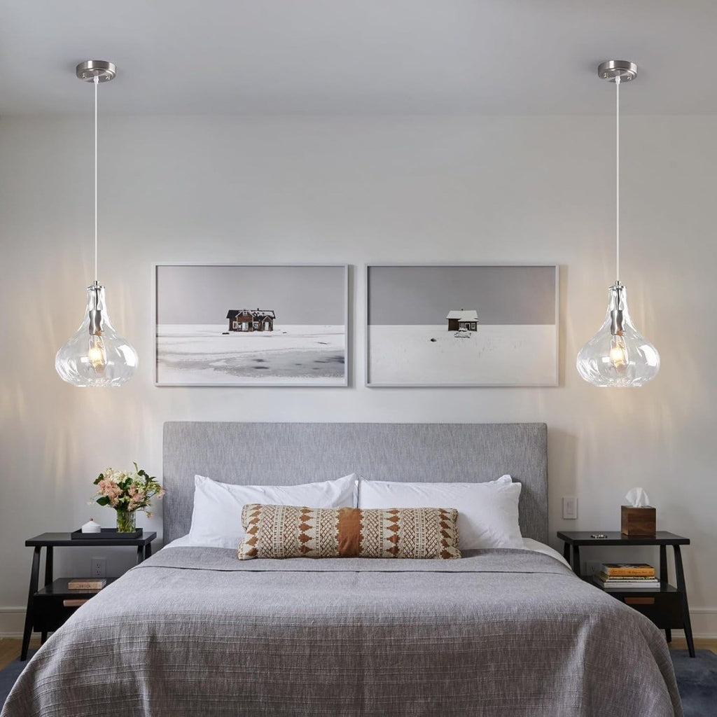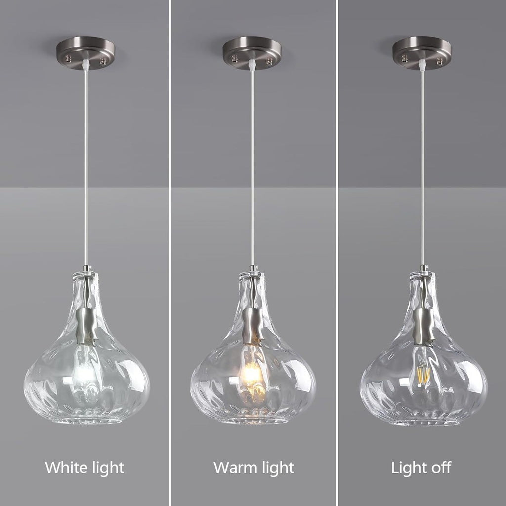 Modern Pendant Light with Hammered Glass Shade 24cm Clear/Silver