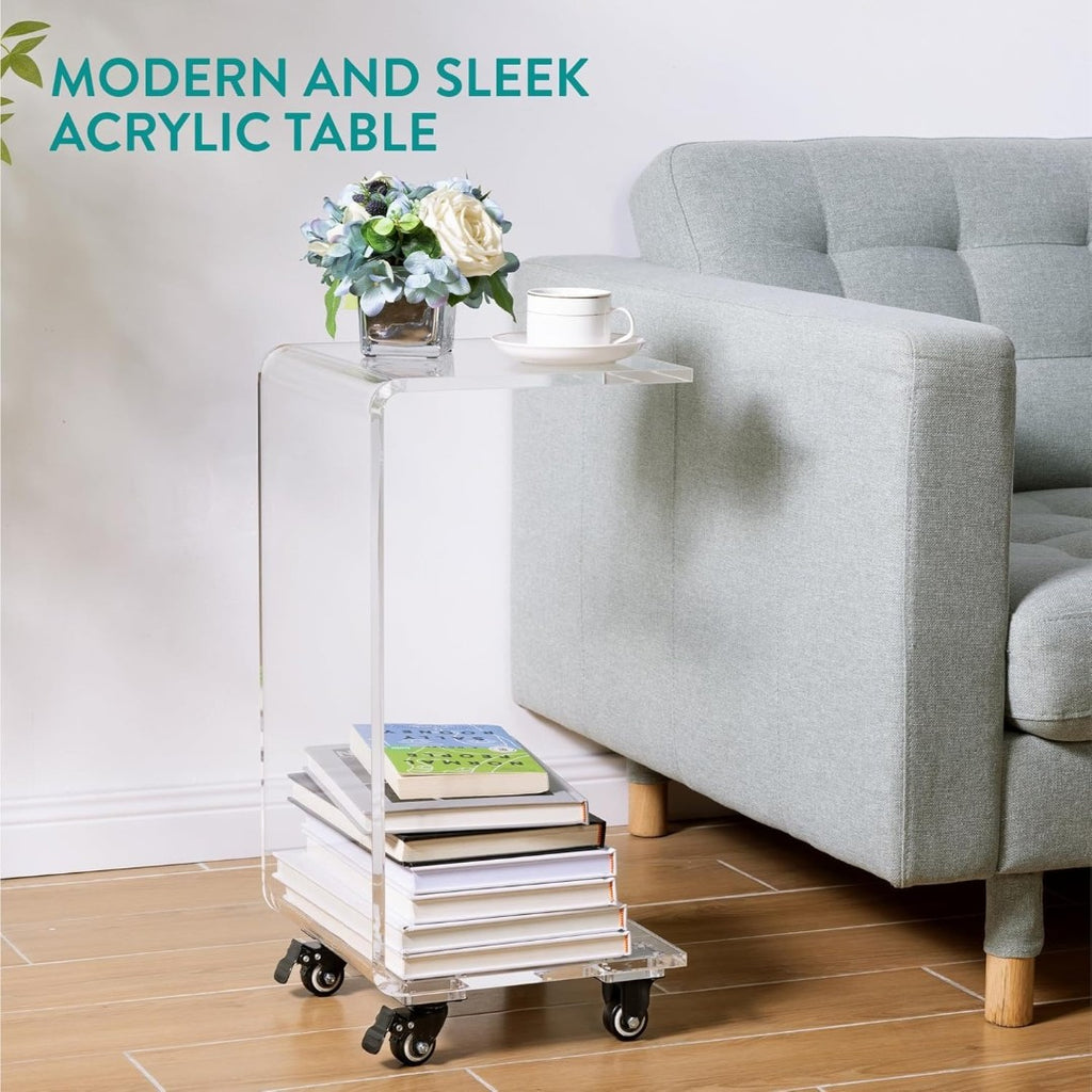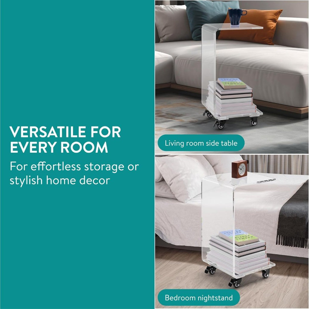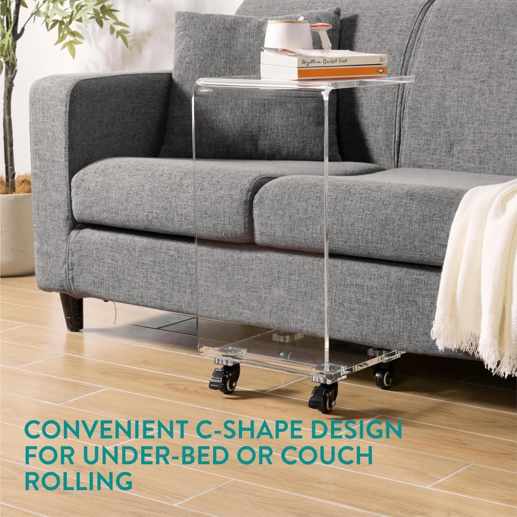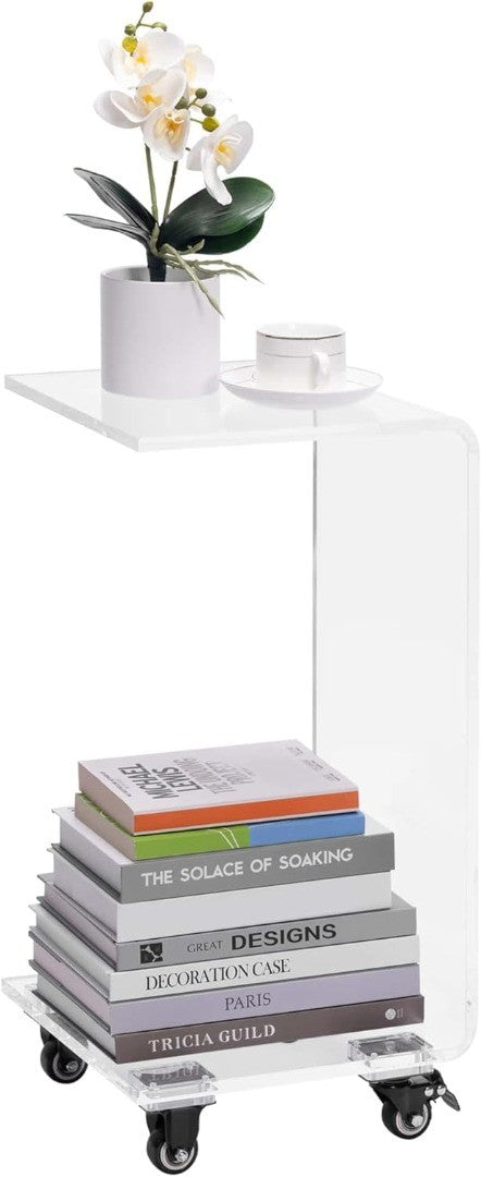 c-shaped design, this clear acrylic table can easily slide under tables, desks,