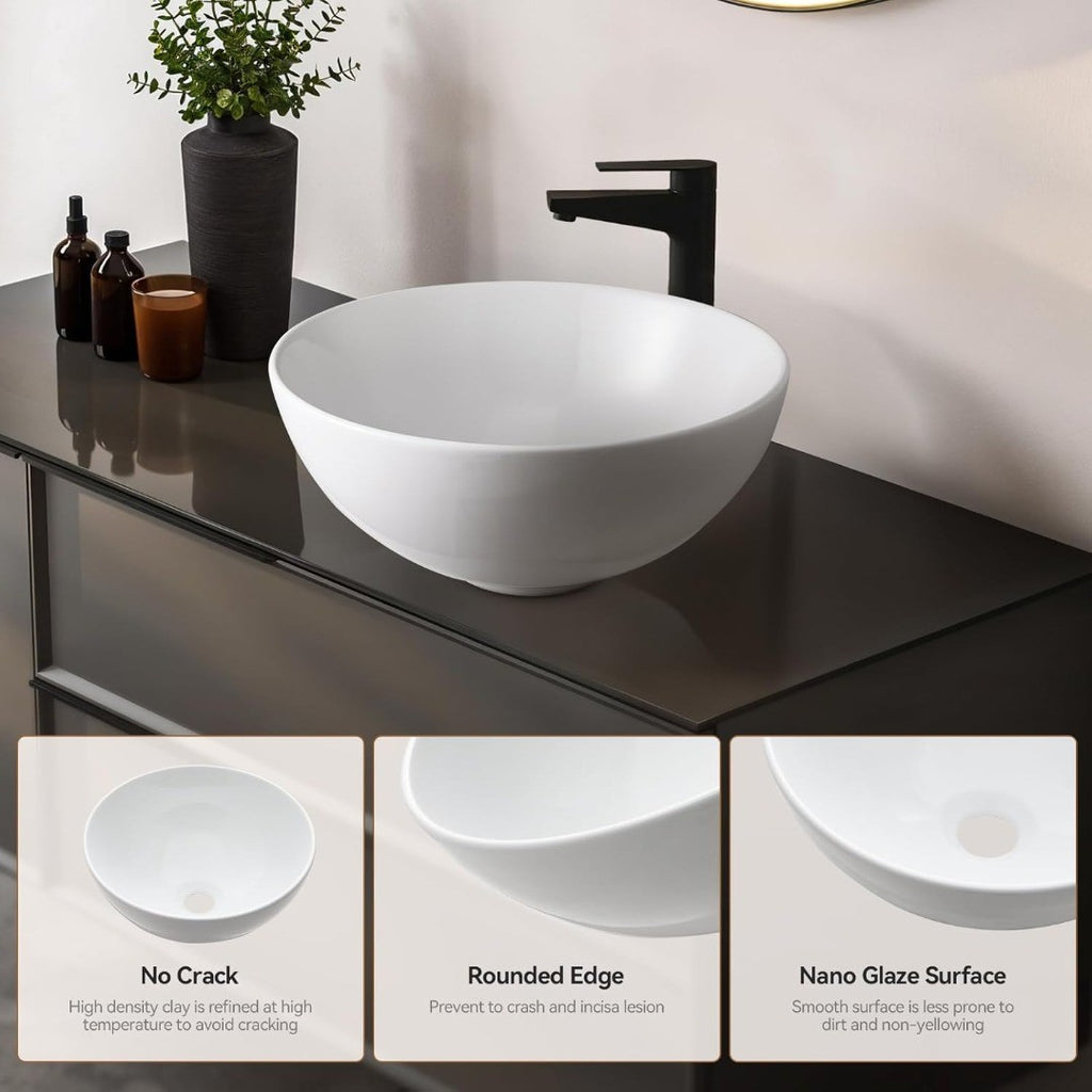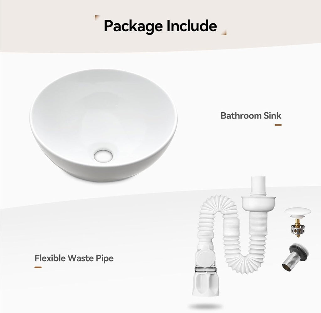 Warmiehomy Countertop Bathroom Vessel Ceramic Sink,Round Bowl Ceramic Basin with Waste Drainer for Bathroom Cloakroom Vanity Lavatory (White, 32x32x13cm).