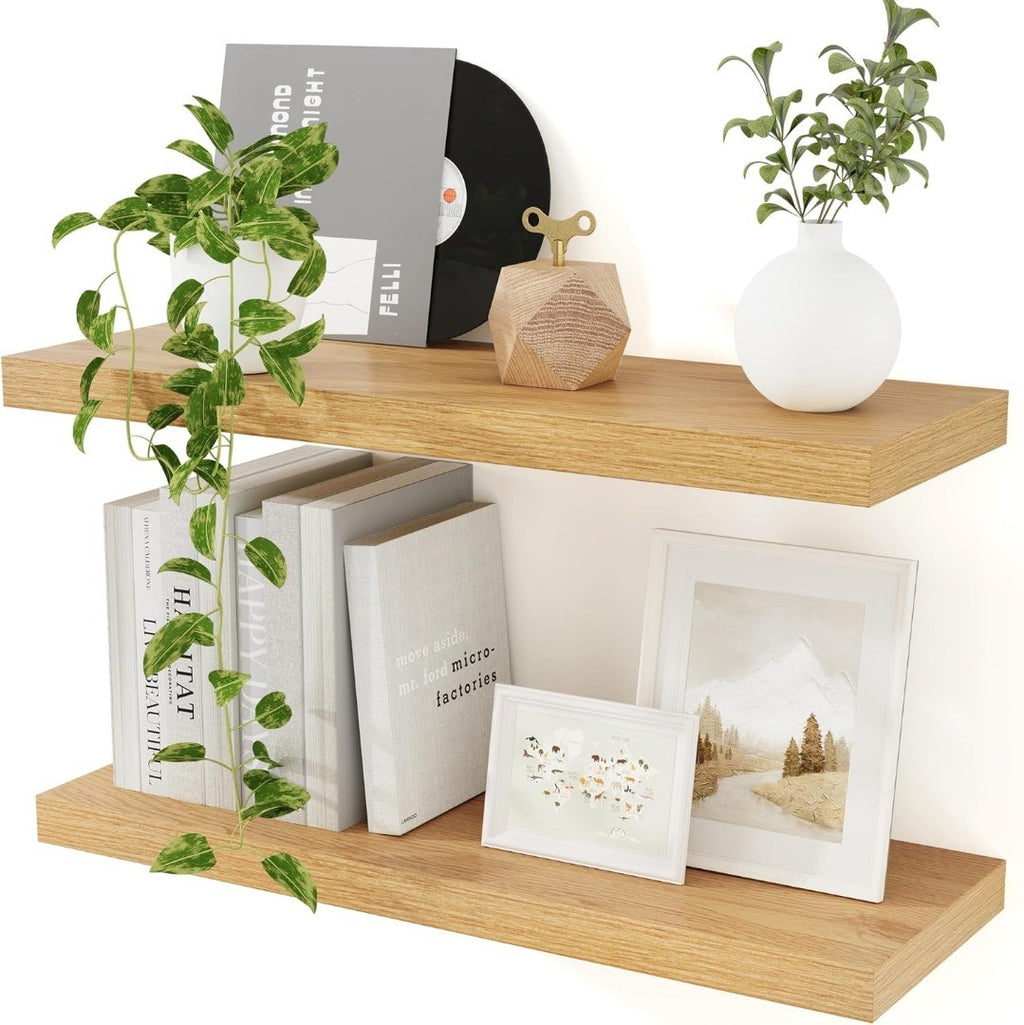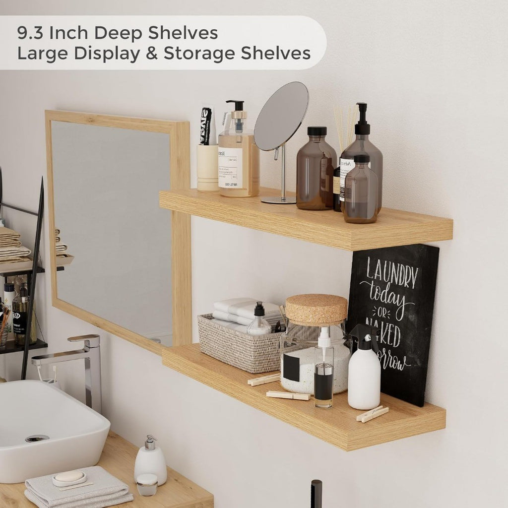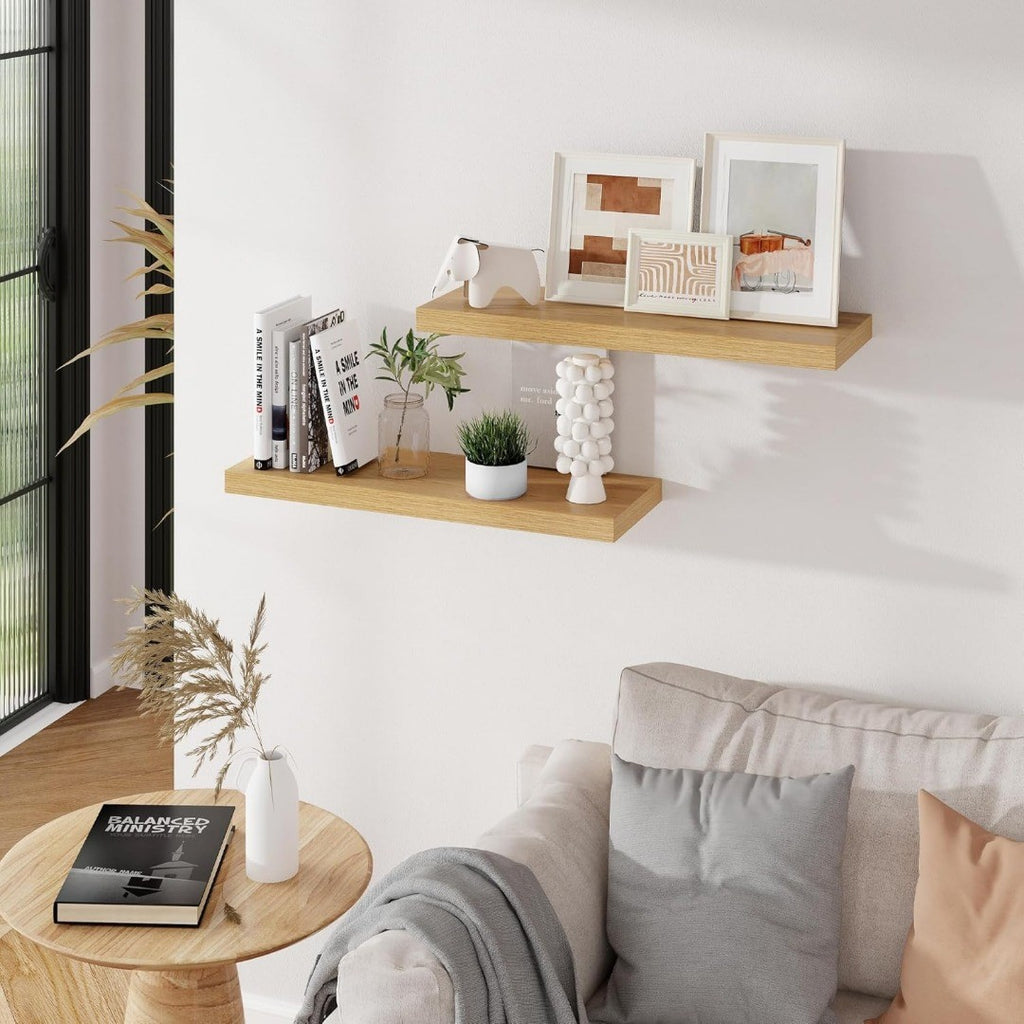 Set of 2 Floating Wall Shelves 90cm Light Oak