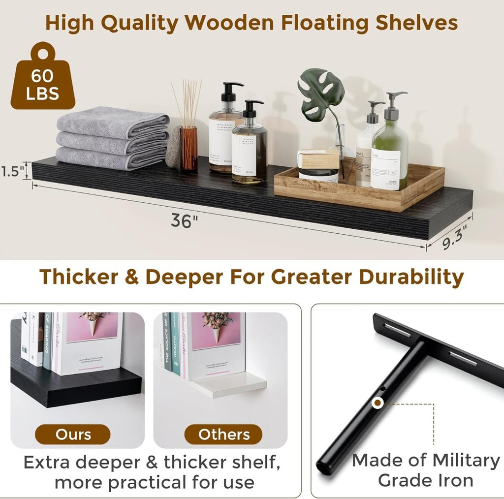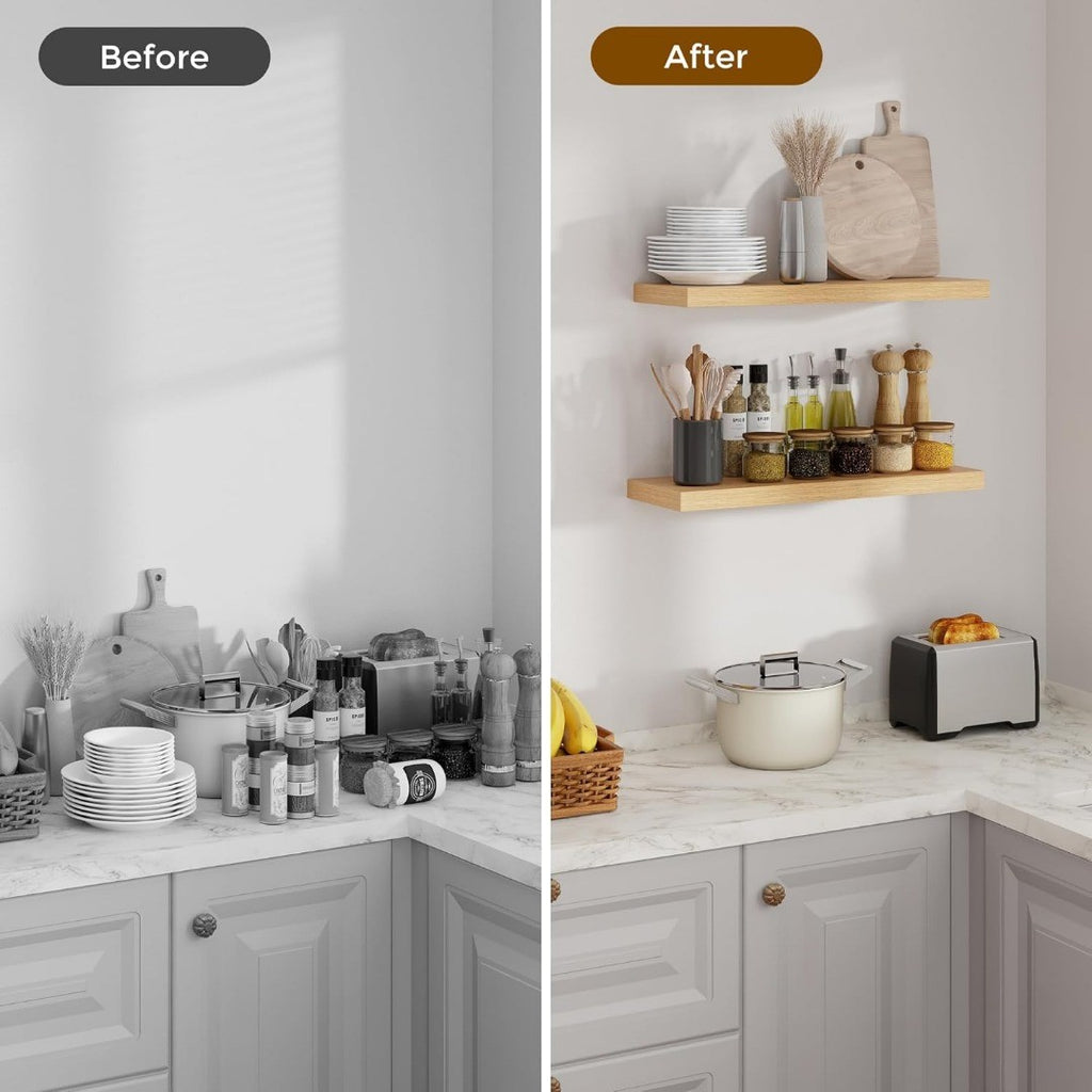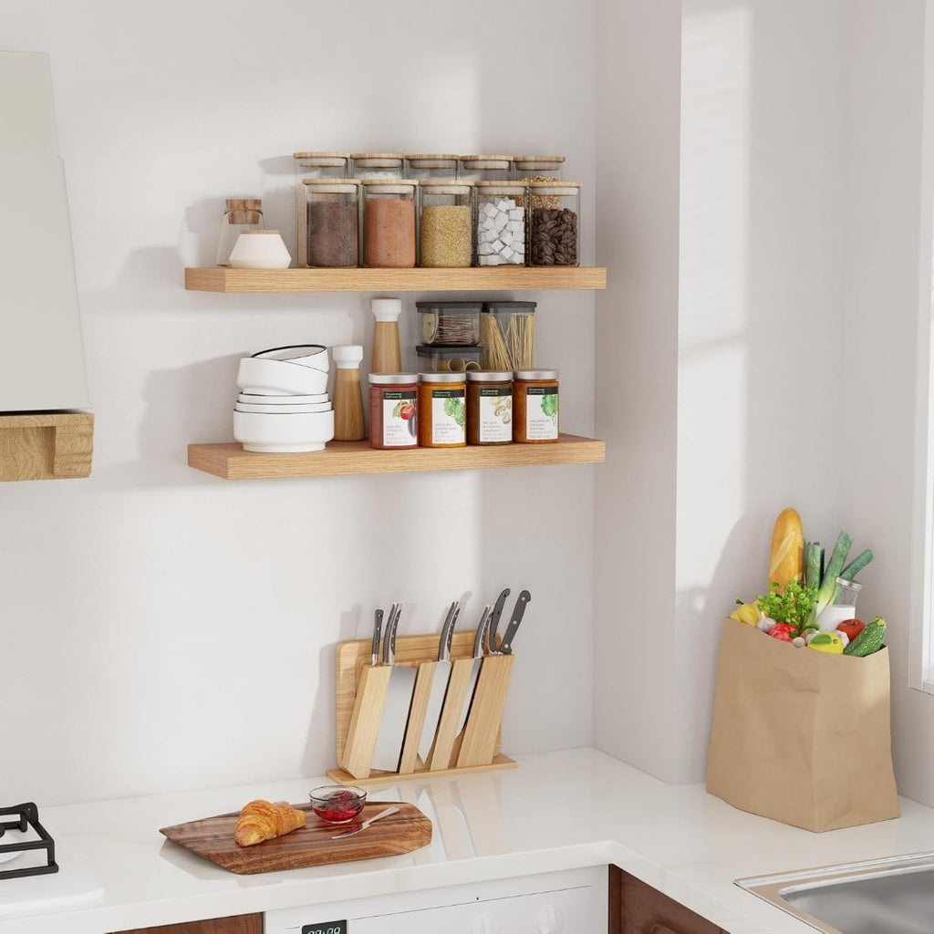 Set of 2 Floating Wall Shelves 90cm Light Oak