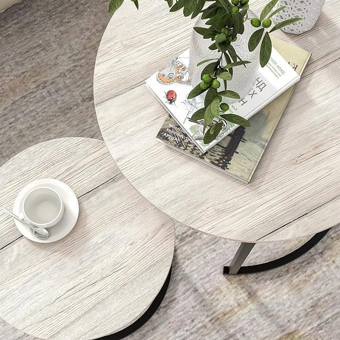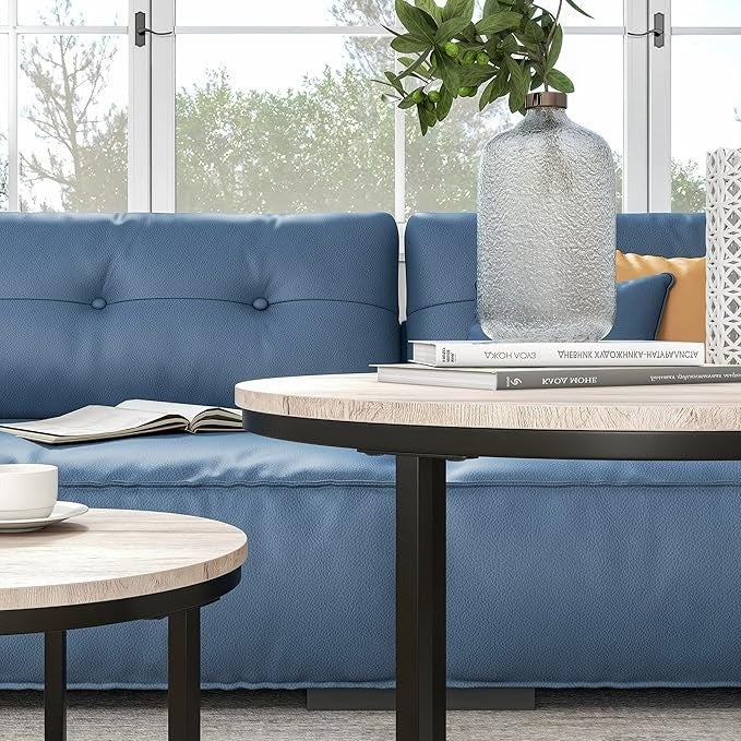 BOPRHOM Round Coffee Table,Nest of Tables Set of 2 Side Table,Coffee Tables for Living Room/Bedroom/Small Space,with Metal Frame,Stacking,Easy Assembly Natural Oak