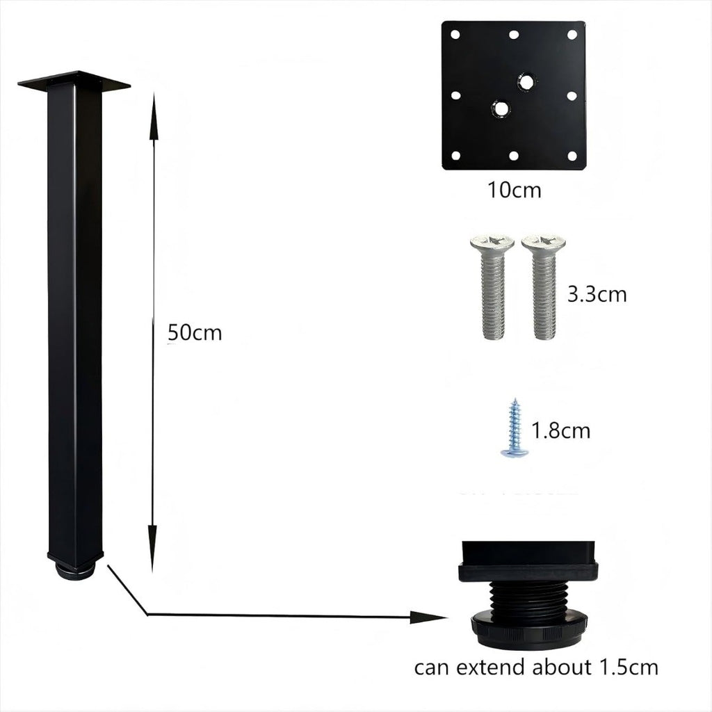 Jahof Adjustable Table Legs 50 cm, Metal Furniture Legs for Coffee Table, Square Profile 50x50mm, Set of 4, (50cm, Black)