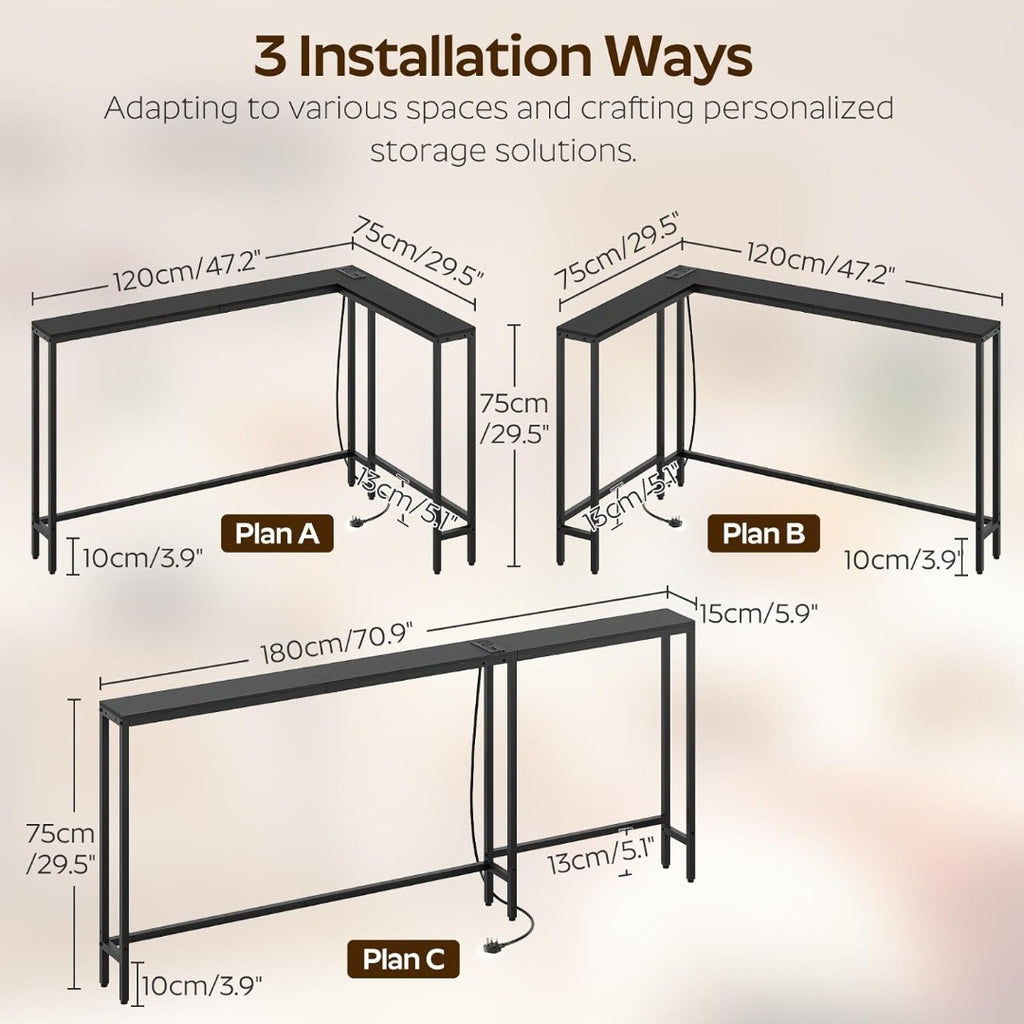Slim Multiway Console Table with Power Outlet 180cm Black