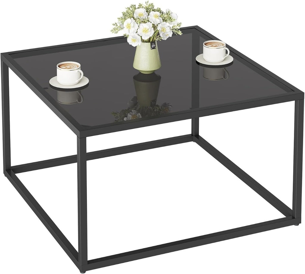 YMYNY Glass Coffee Table, Tempered Glass Square Coffee Tables With Metal Frame, Unique Modern Table for Living Room Home Office 68 x 68 x 40CM, Black, HCT001B