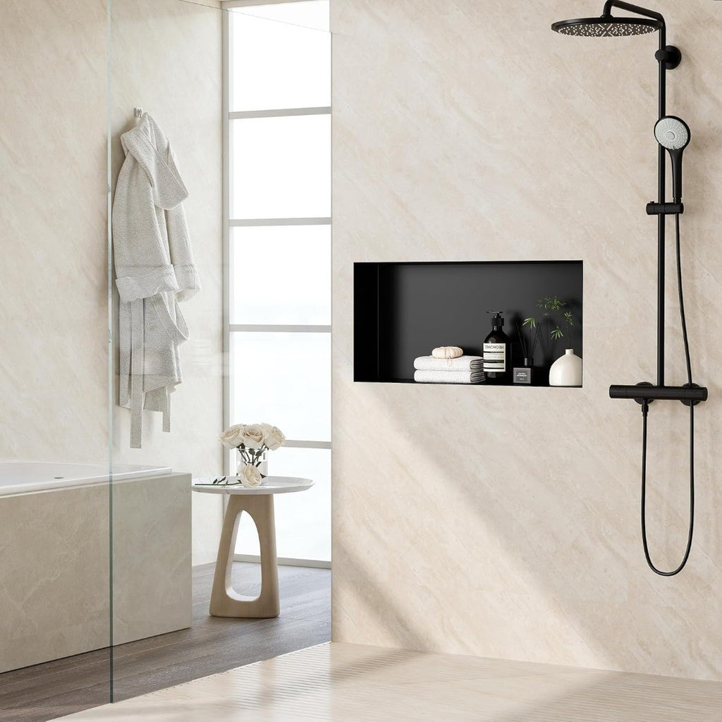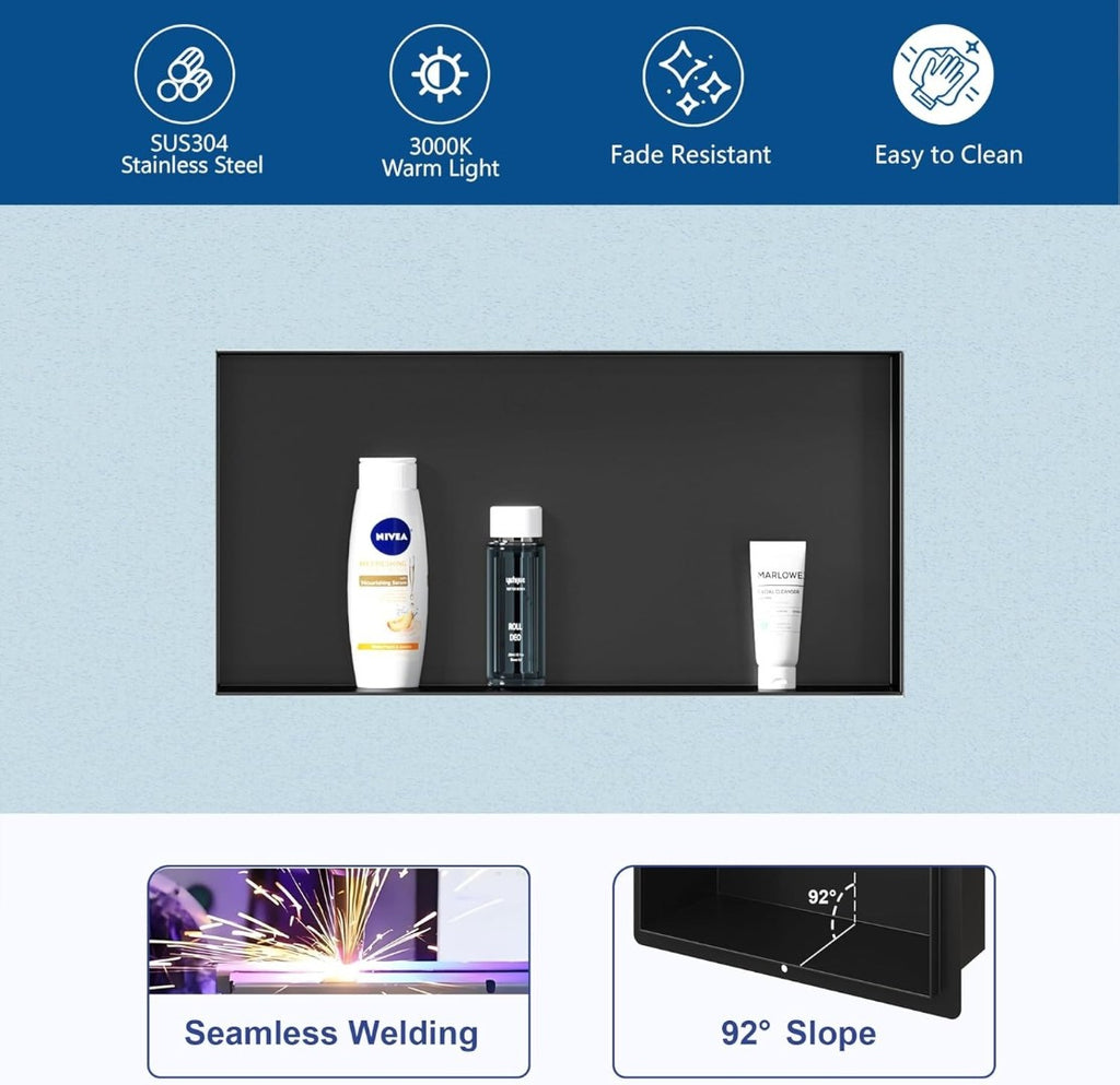 High Quality: Black shower niche made of stainless steel SUS304 with the latest coating for rust and corrosion resistance, durability and easy cleaning, great for wet rooms