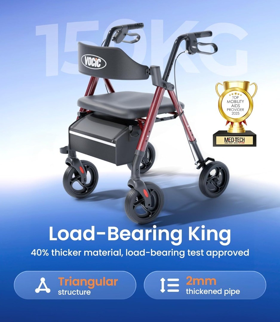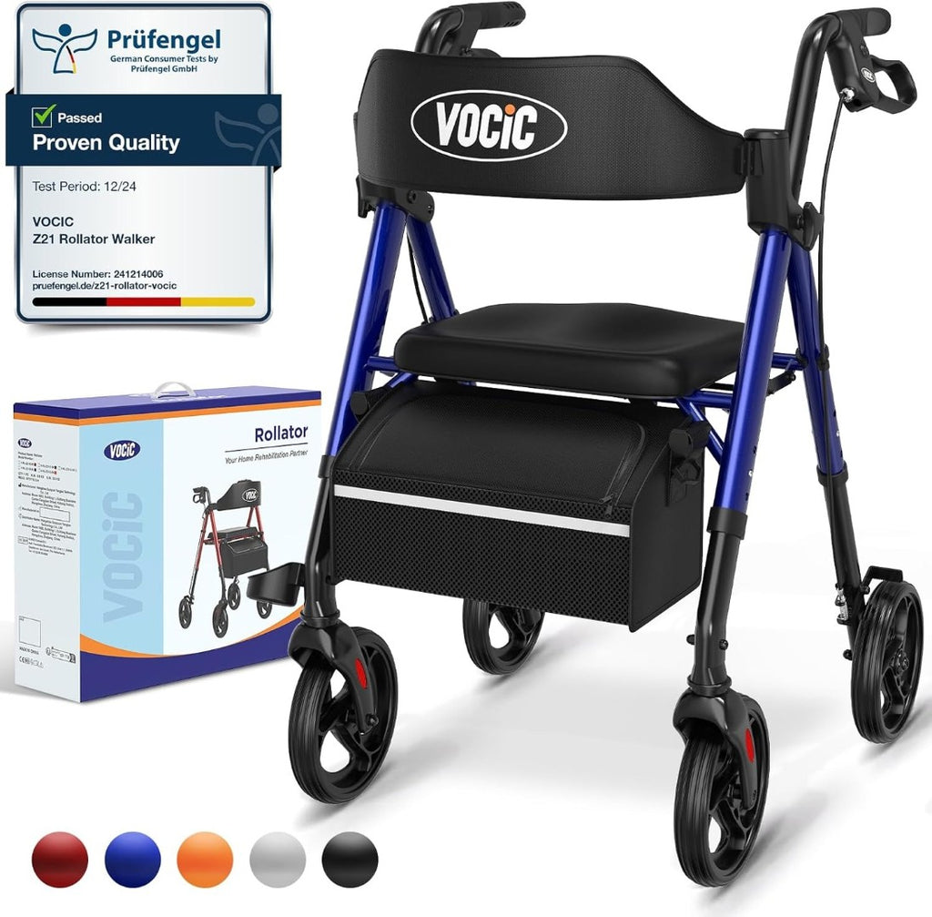 VOCIC Rollator Folding 4-Wheel Walker with Seat Blue