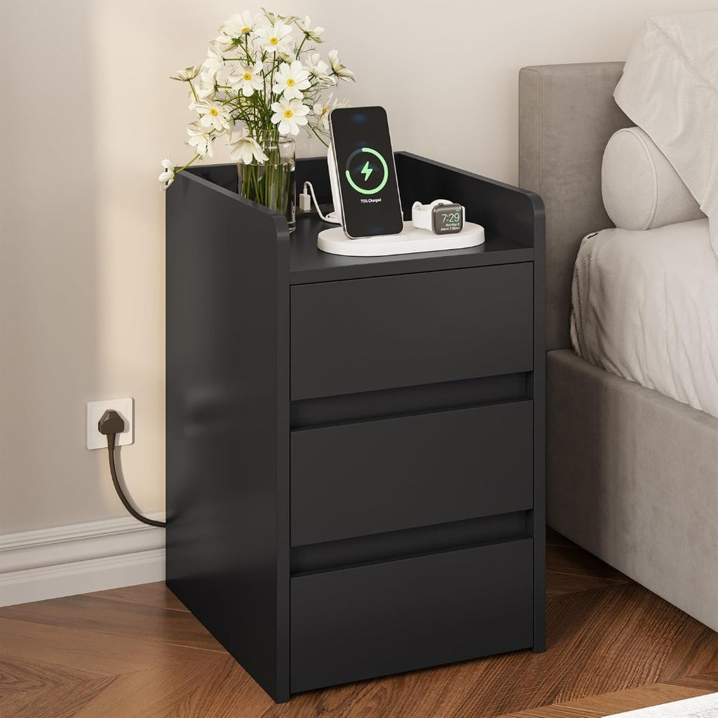 YITAHOME Bedside Table with Drawers & Charging Station Black