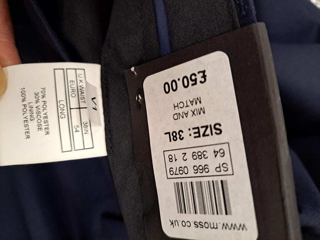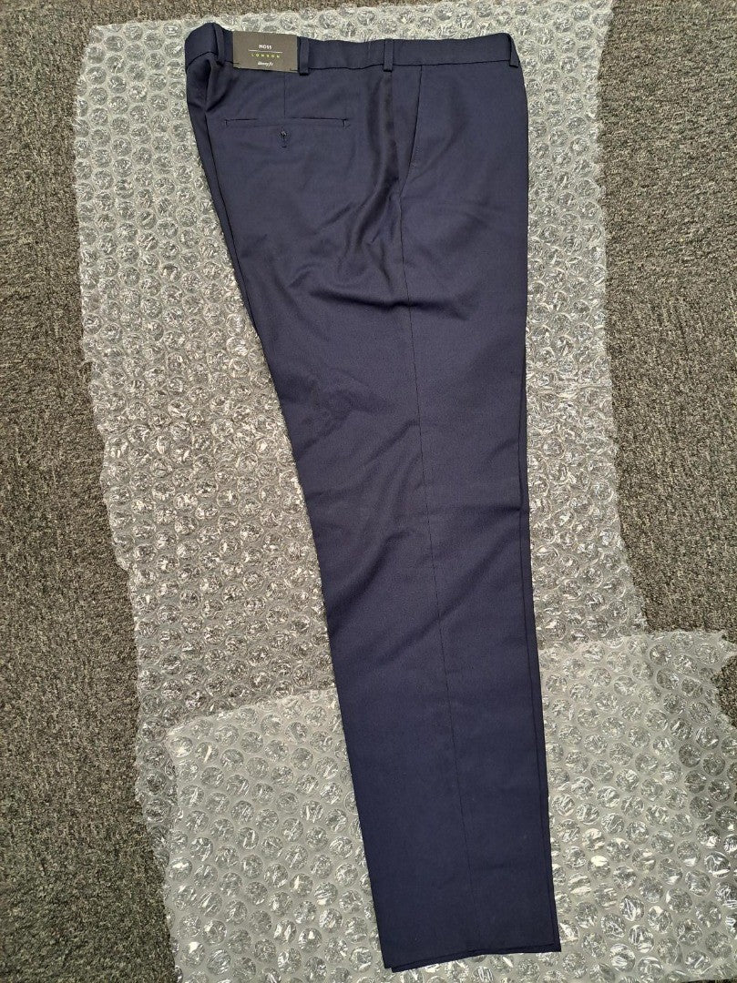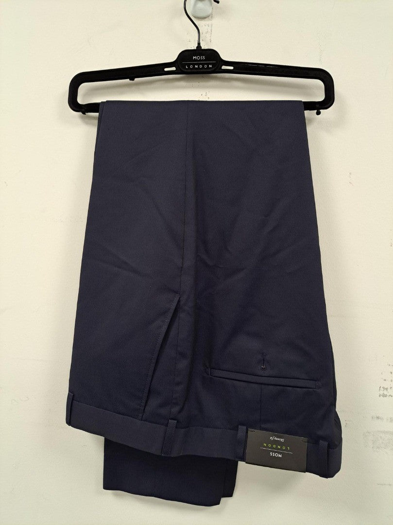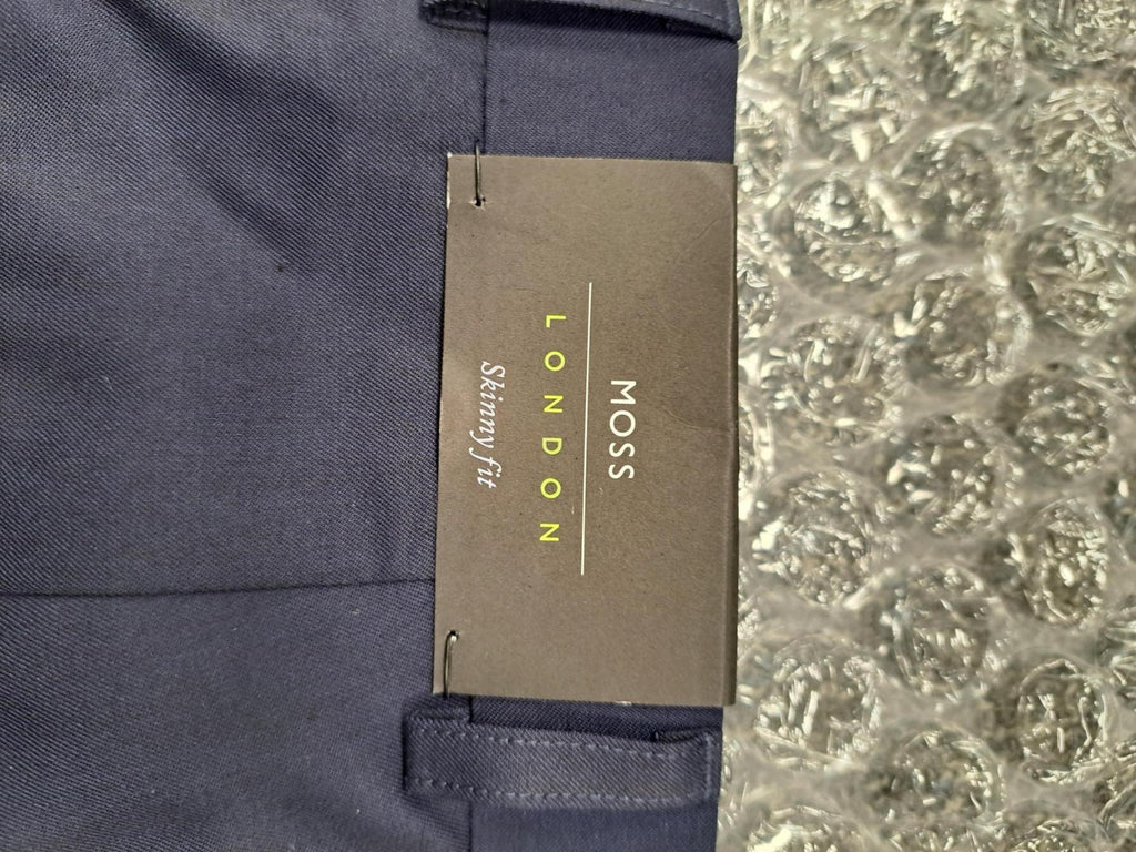 Moss Men's Trousers Size 38L Navy Blue Pockets Belt Loops Zip, Skinny Fit