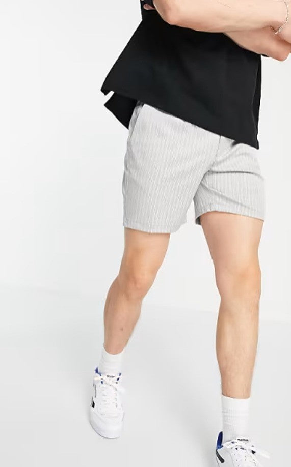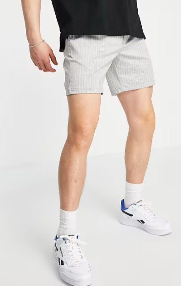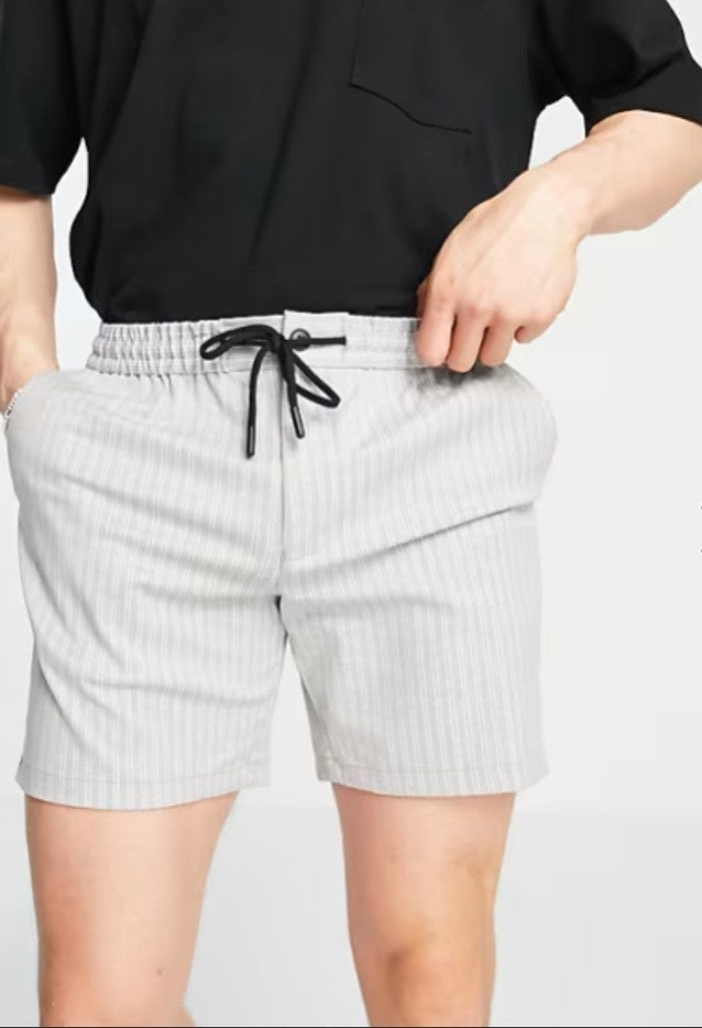 Topman Mens skinny stripe shorts Elastic Drawstring Waist in grey Size W32 NWT