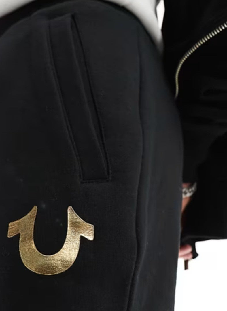 True Religion jersey shorts in black w/foil Logo, Style# 106453, Size: XL