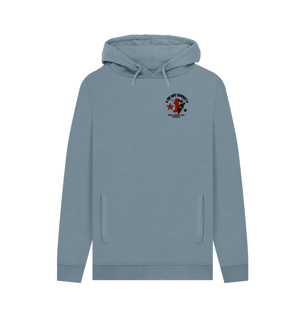 Our OFFICIAL On Any Sunday Motorsport Mini Print Graphic Blue Hoodie based on the popular film features a printed design on the front. This quality garment is manufactured officially under license by Park London on behalf of On Any Sunday.