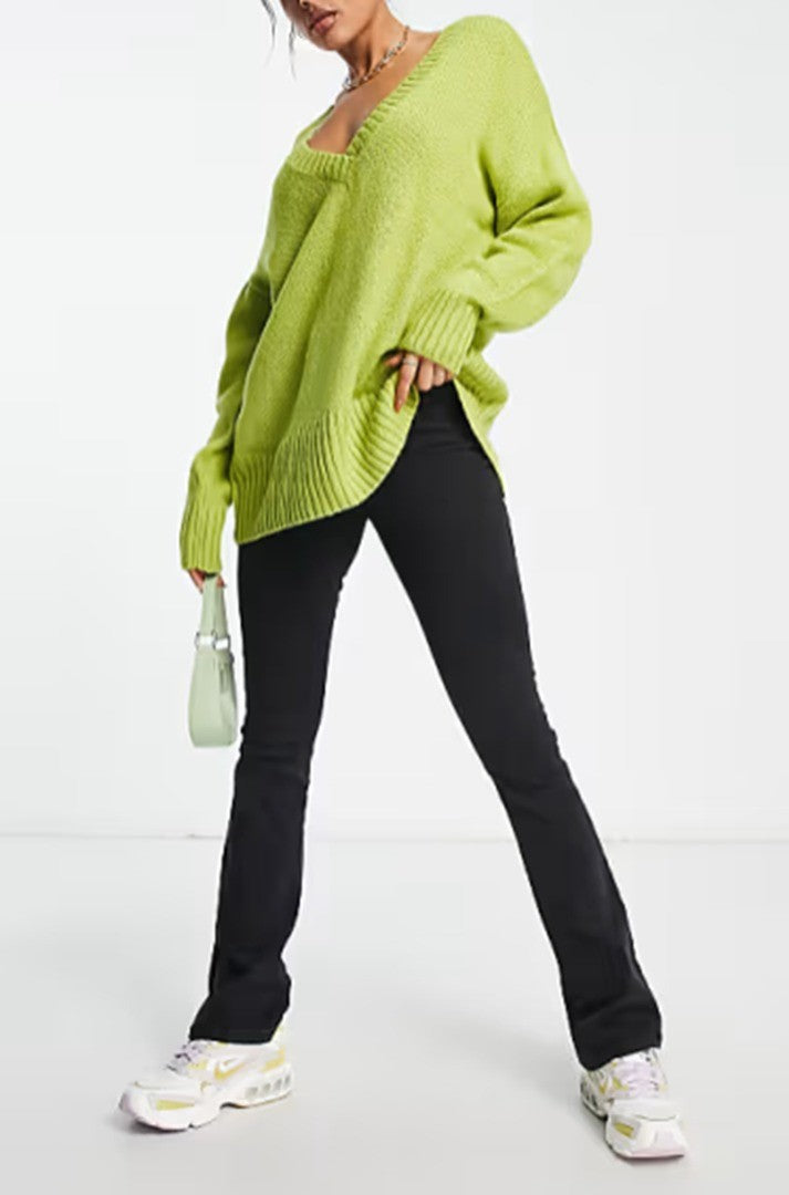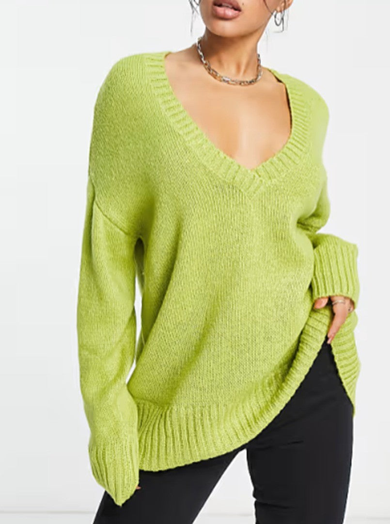 ASYOU Women's V-Neck Knitted Jumper in Green, Size: UK 18, Style# 102678830