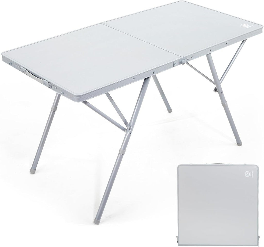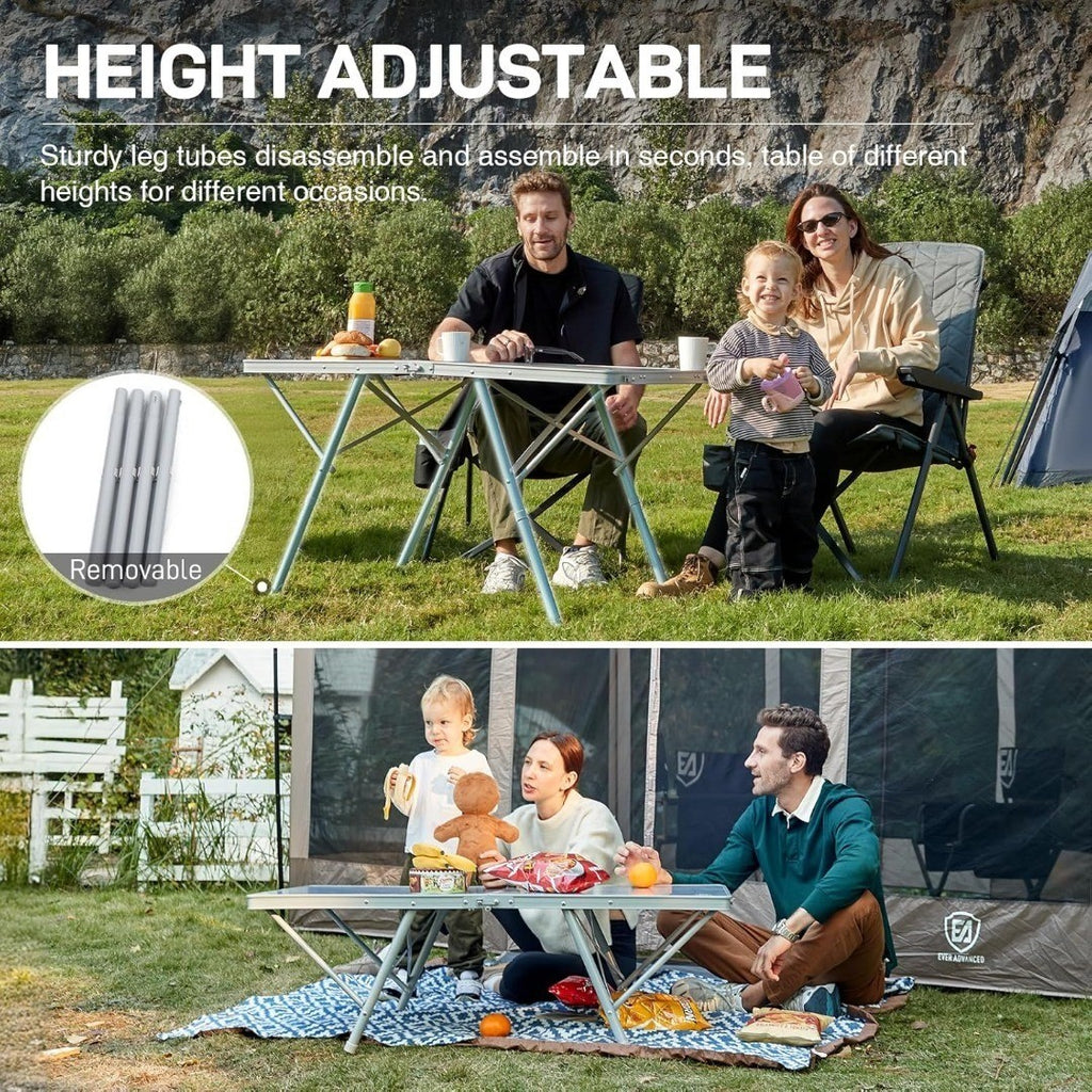 EVER ADVANCED Camping Table that Fold up for 4-6 Person, 4ft Folding Table Picnic Height Adjustable, Foldable Table Outdoor Heavy Duty, Dining Table for Garden BBQ, Support up to 60kg Silver