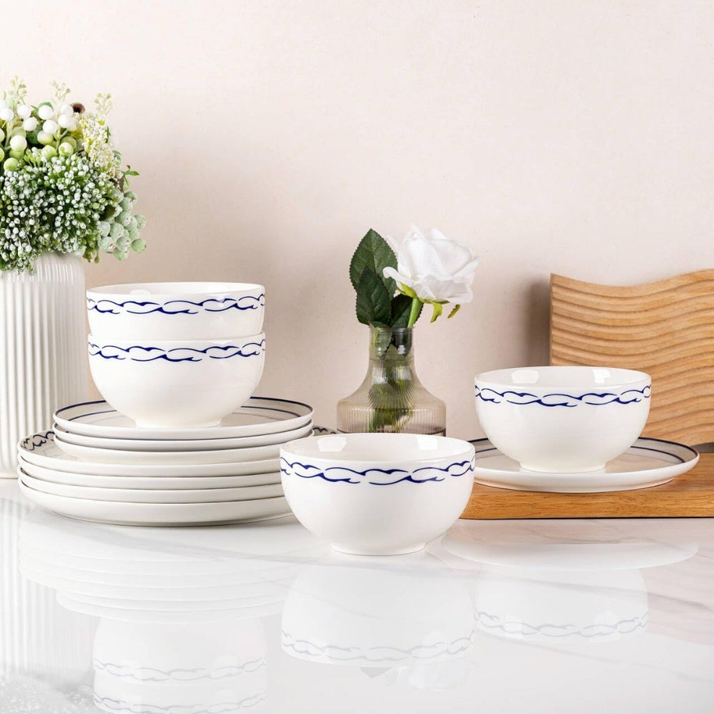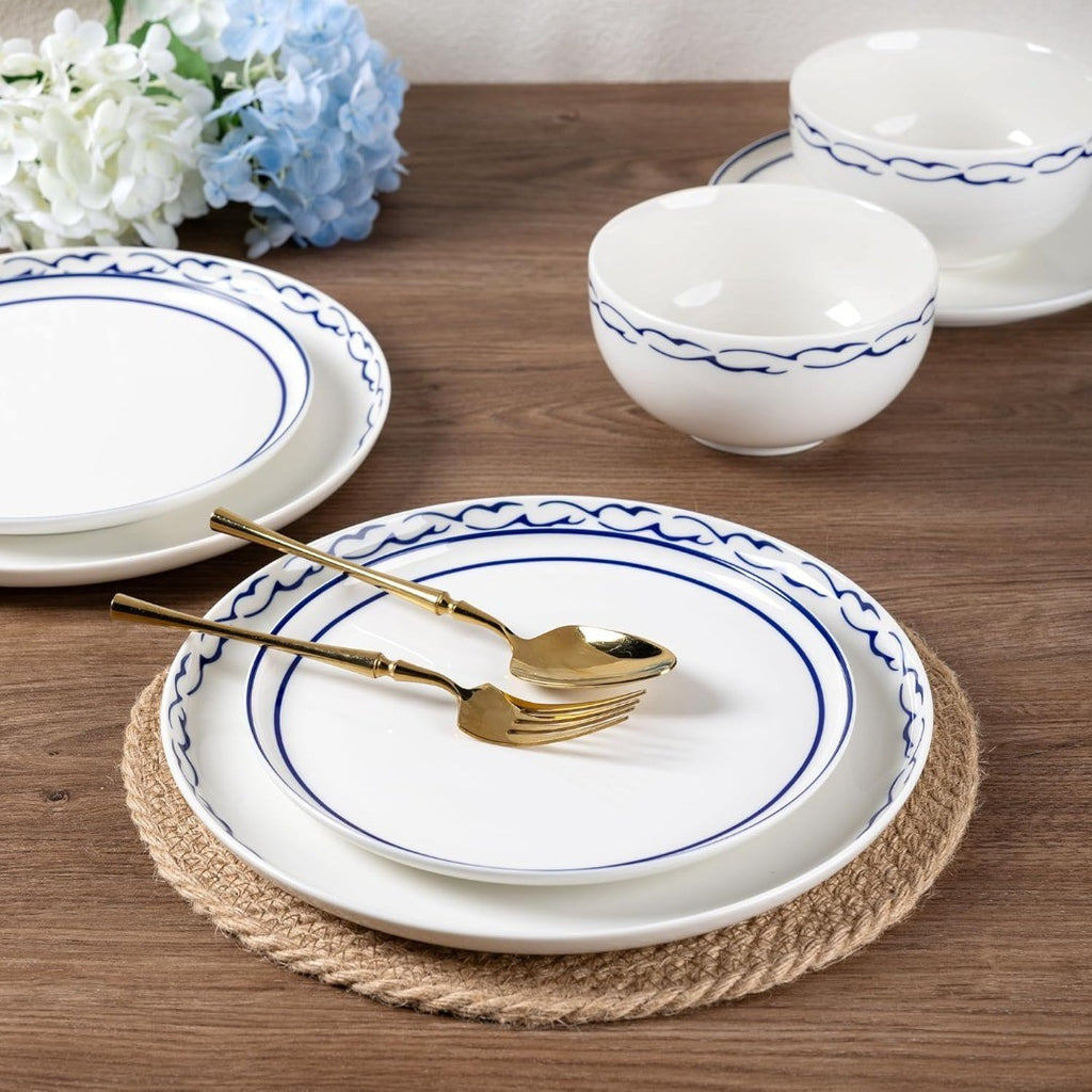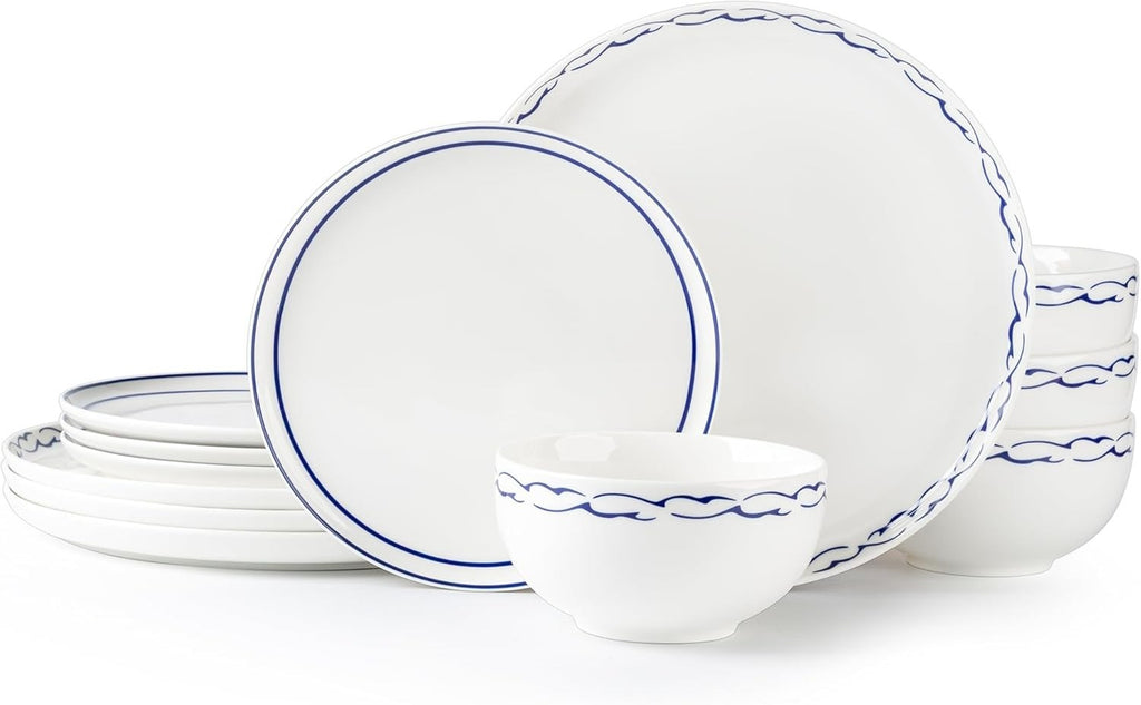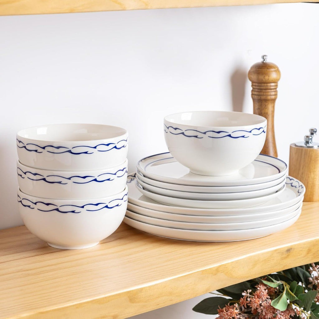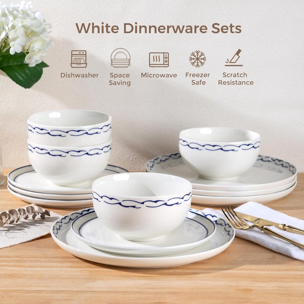 LeRatio Dinner Set for 4, 12 Pieces Porcelain Plates and Bowls Set, Chip & Scratch Resistant Reactive Glazed Dinnerware Set, Dishwasher & Microwave Safe Crockery Set.