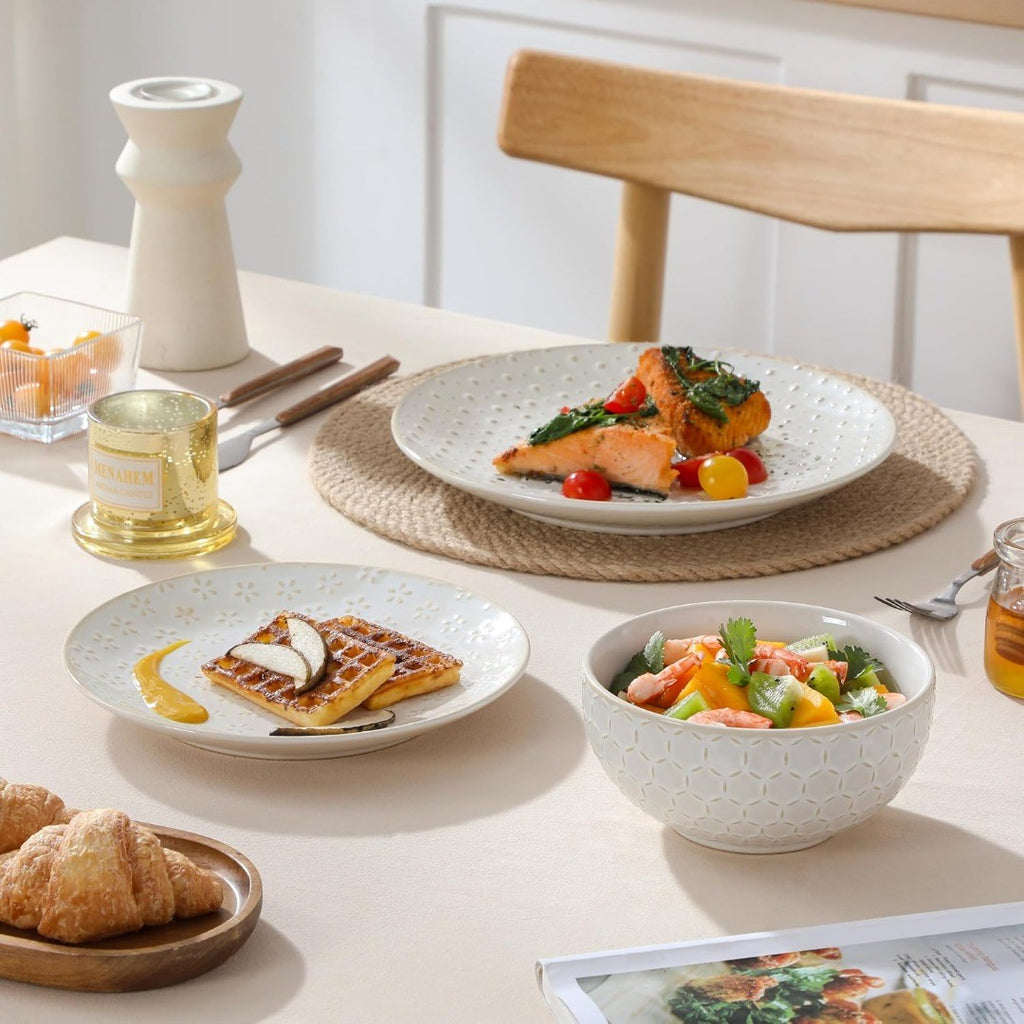 MALACASA Lydia 12-Piece Dinner Set for 4 Embossed White/Beige
