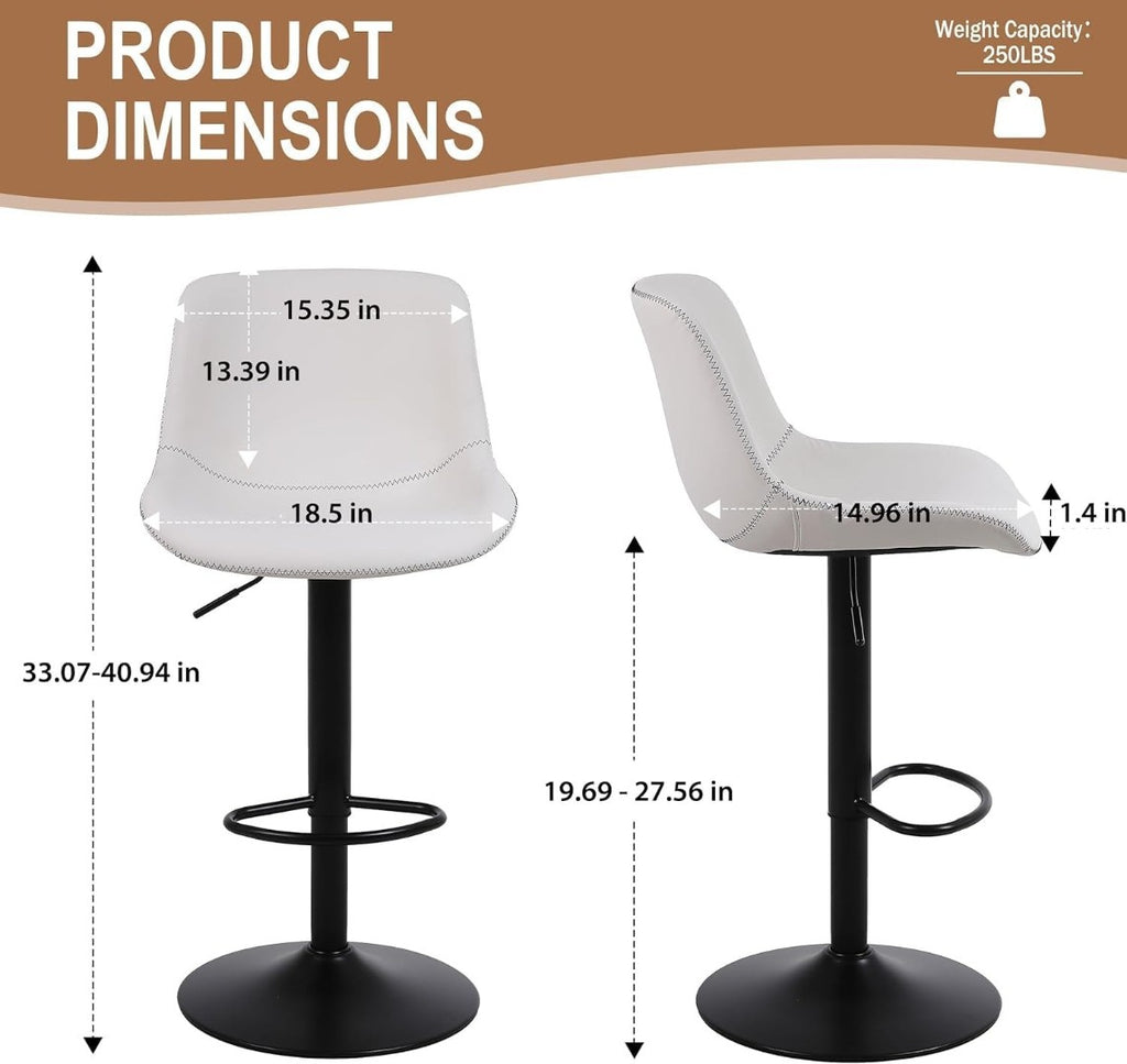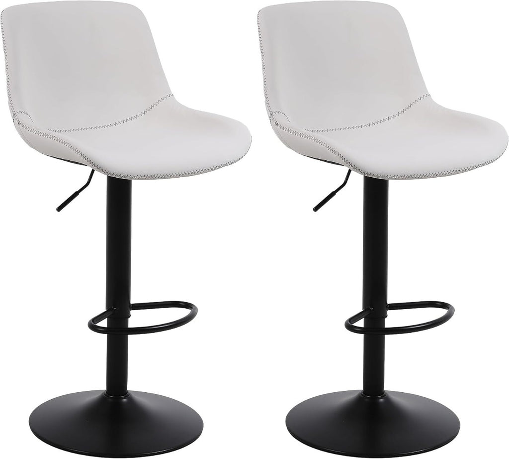 Ermnois Bar Stools – Set of 2, Swivel Adjustable PU Leather – White – 38D × 48W × 111H cm – Opened & Repacked