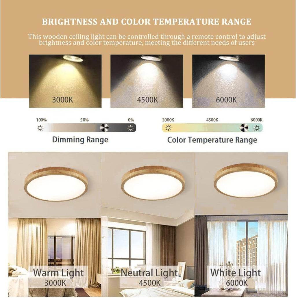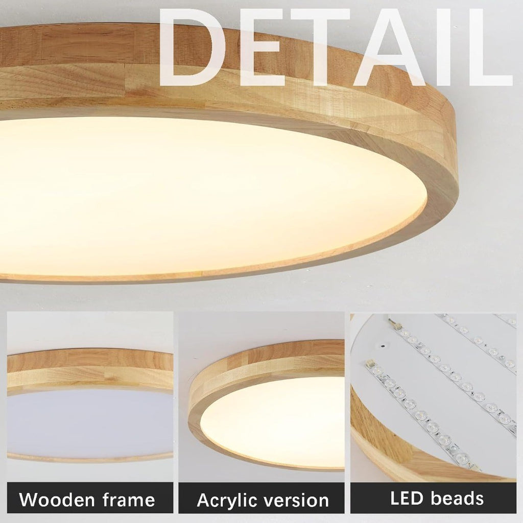 SCHINDORA Wooden LED Dimmable Ceiling Light 50cm Round