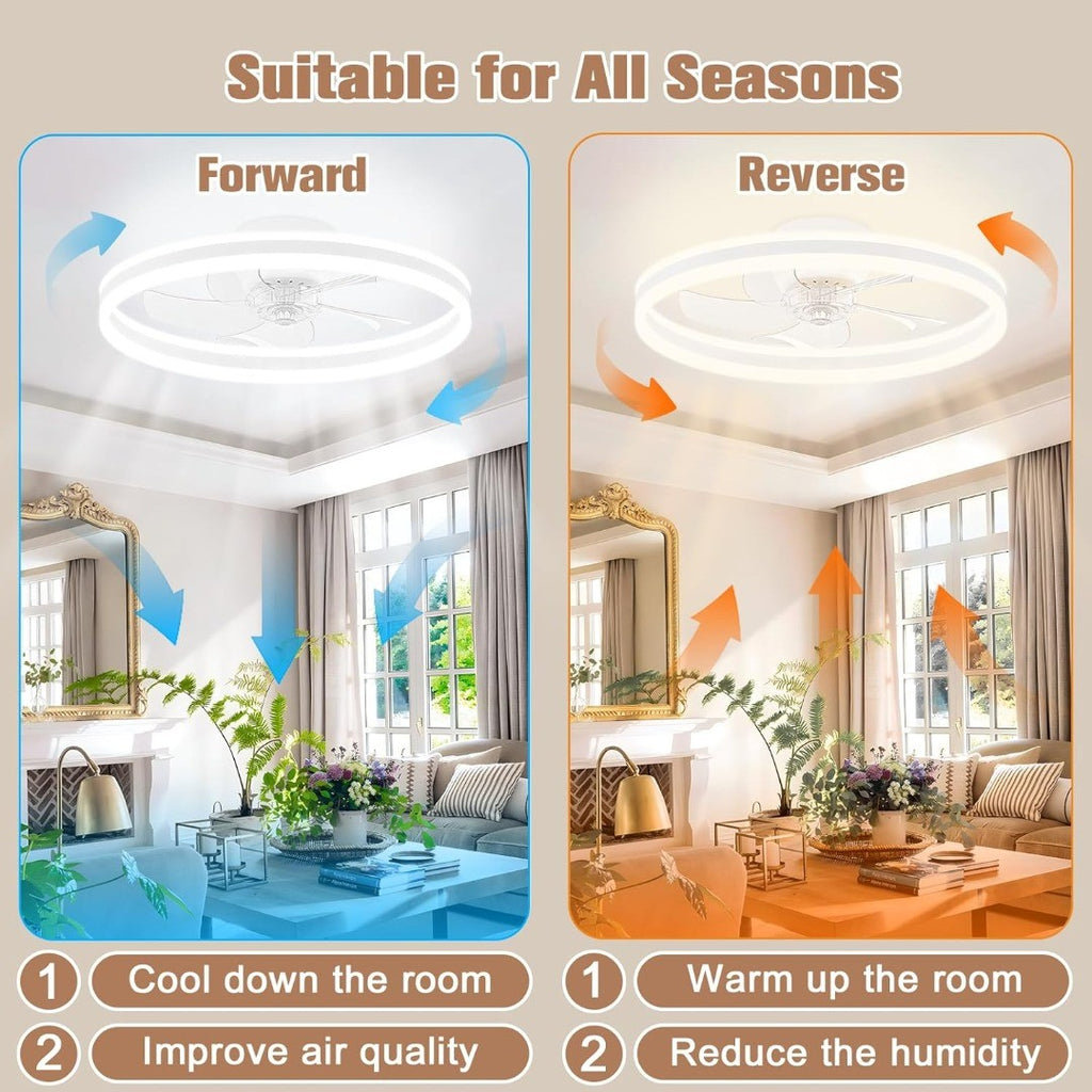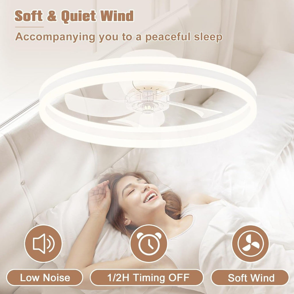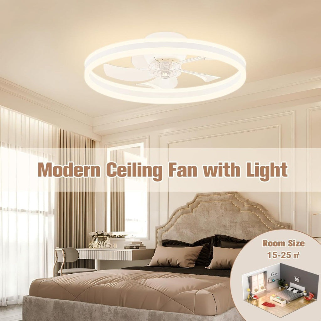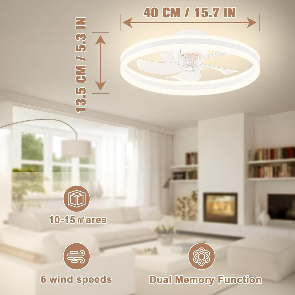 VOLISUN Ceiling Fans with Lights Remote Control, 6 Speeds and Dimmable Modern Smart Ceiling Fan Light, Quiet LED Fan Lights for Bedroom Living Room Dining Room (40cm, White) [Energy Class C]