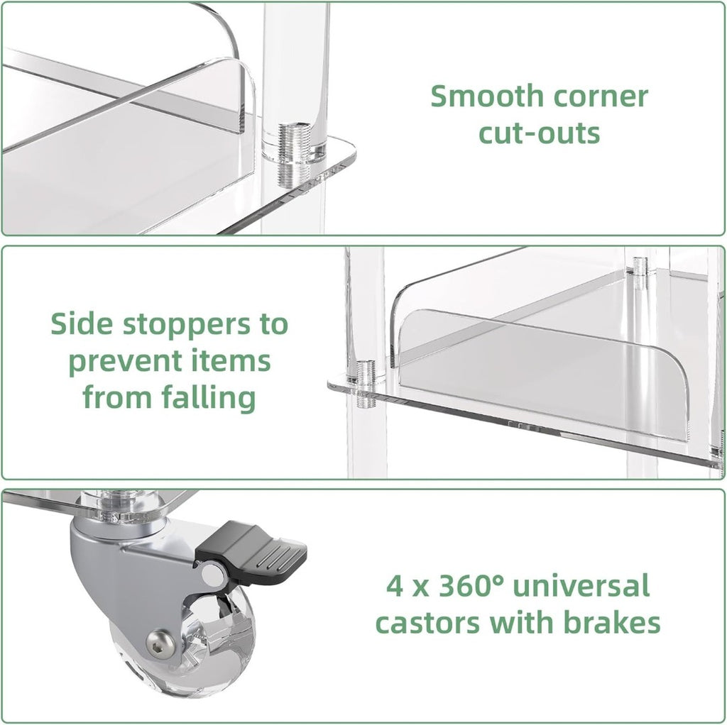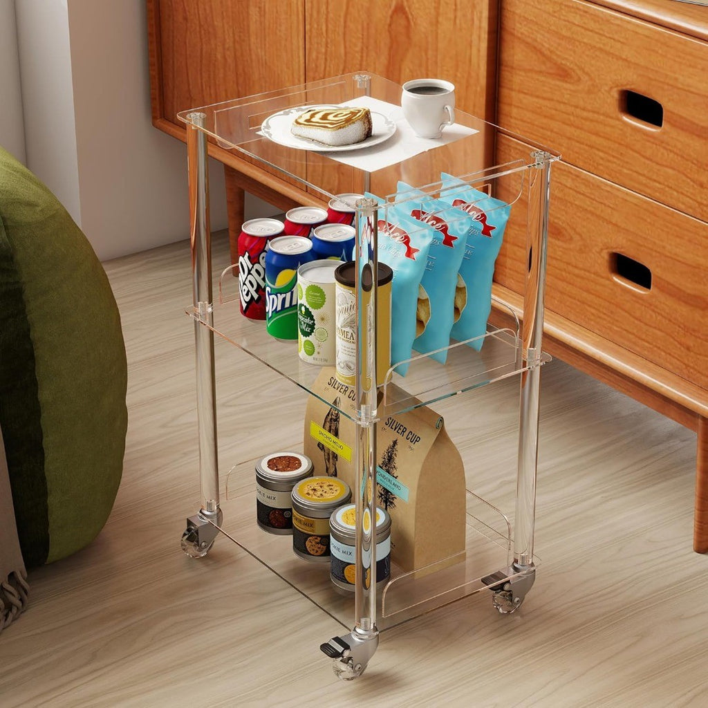yabymy Clear Acrylic Side Table 3-Tier End Table with locking wheels Acrylic Bedside Table for Living Room, Office, Hallway, Bedroom Nightstand