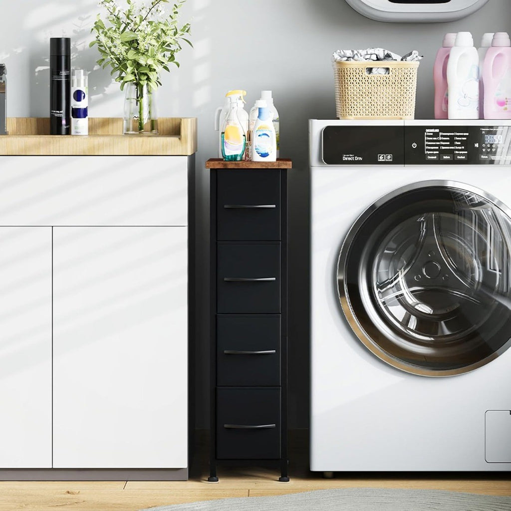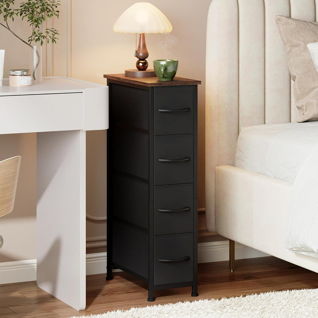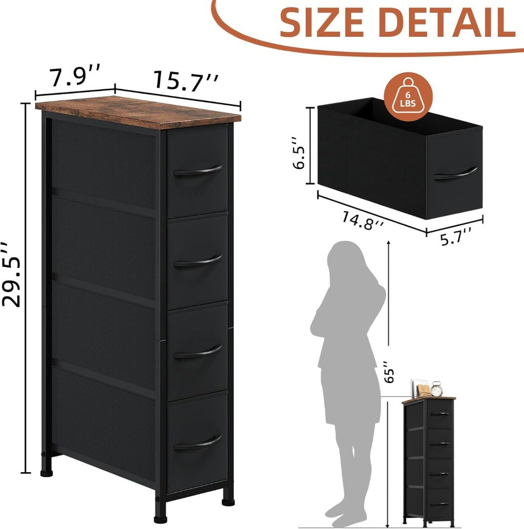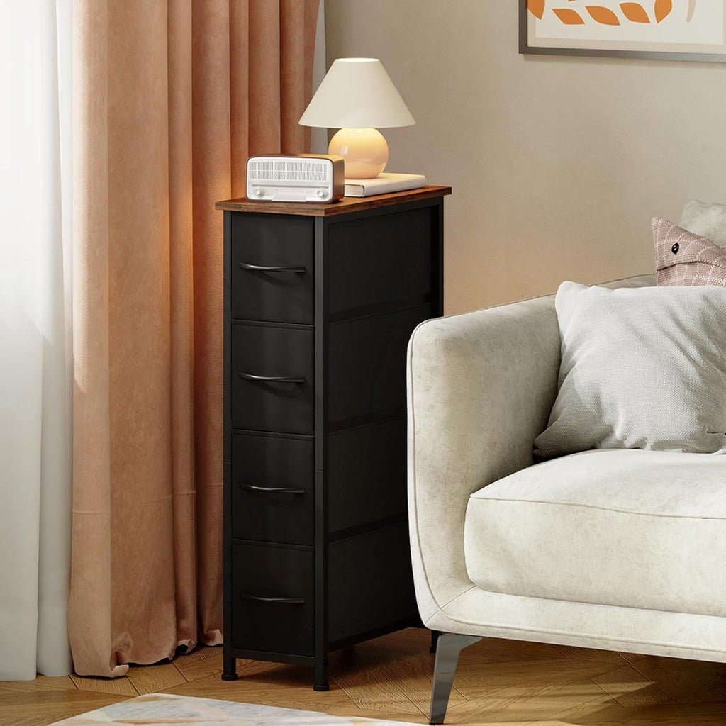 Narrow Chest with 4 Fabric Drawers Black/Rustic Brown