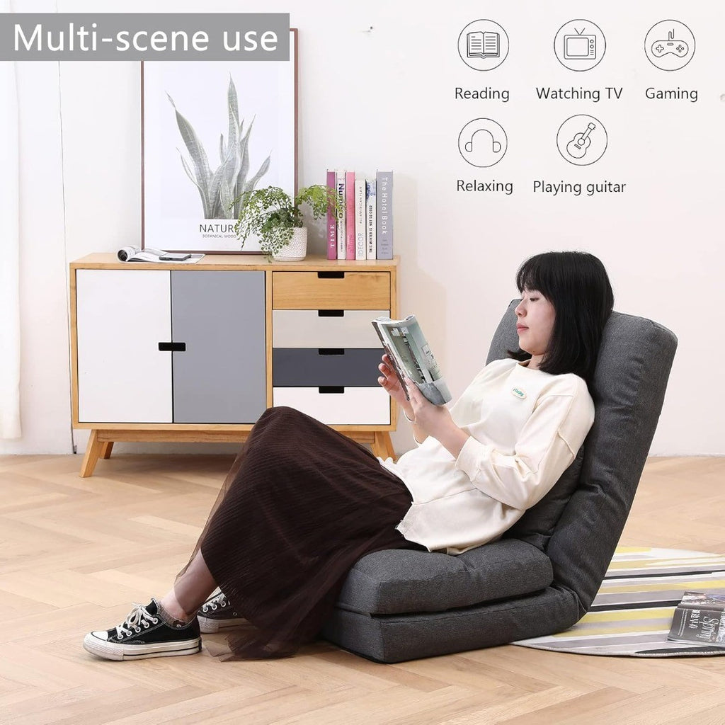 FLOGUOOR Floor Chair – Adjustable 14 Angles Chair Bed with Pillow (Grey)