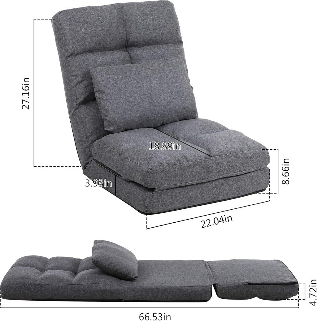 14 Angle FLOGUOOR Floor Chair, Adjustable Chair Bed with Pillow, Floor Sofa, Single Sofa Bed Chair (Grey) 8823