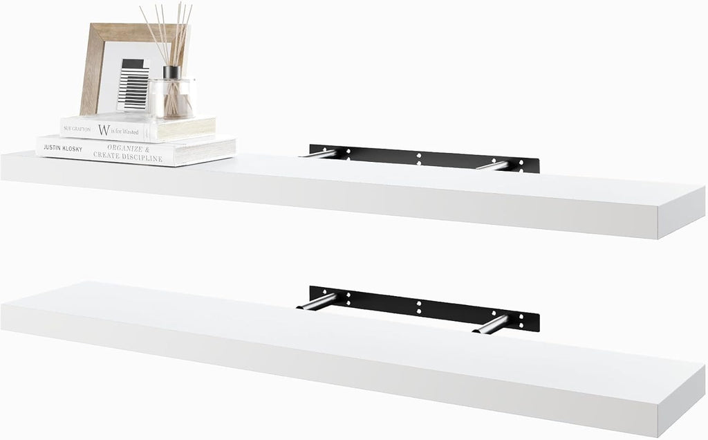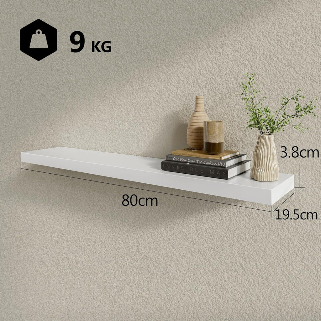 BAMEOS Floating Shelves, 80cm White, Wall-Mounted Wooden Shelves with Invisible Brackets - Set of 2, for Bedroom, Bathroom, Living Room, Kitchen.