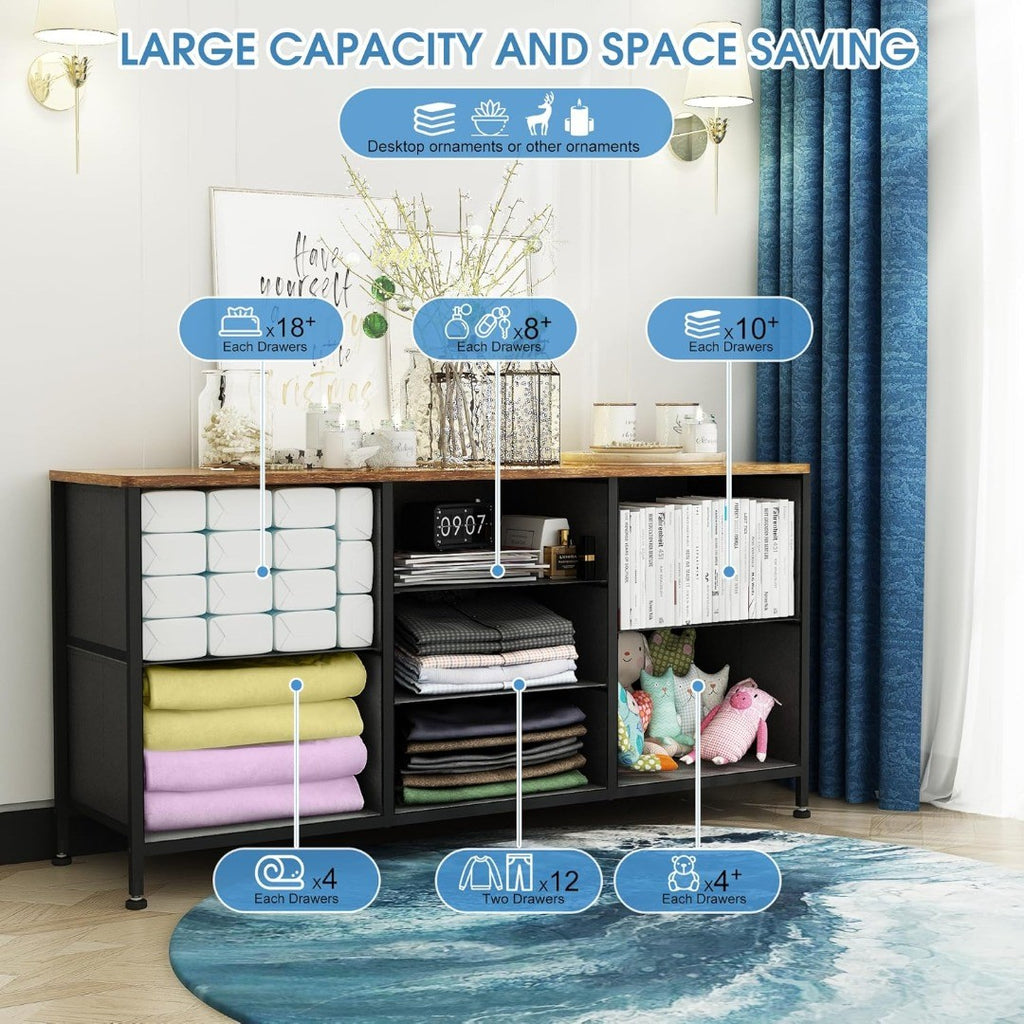 Large Storage Capacity: The dresser has 4 separate large drawers and 3 medium drawers. Each drawer provides abundant space, capable of accommodating 10 T-shirts, dozens of pairs of socks, or children's toys and underwear, effectively helping you restore order to a chaotic room.