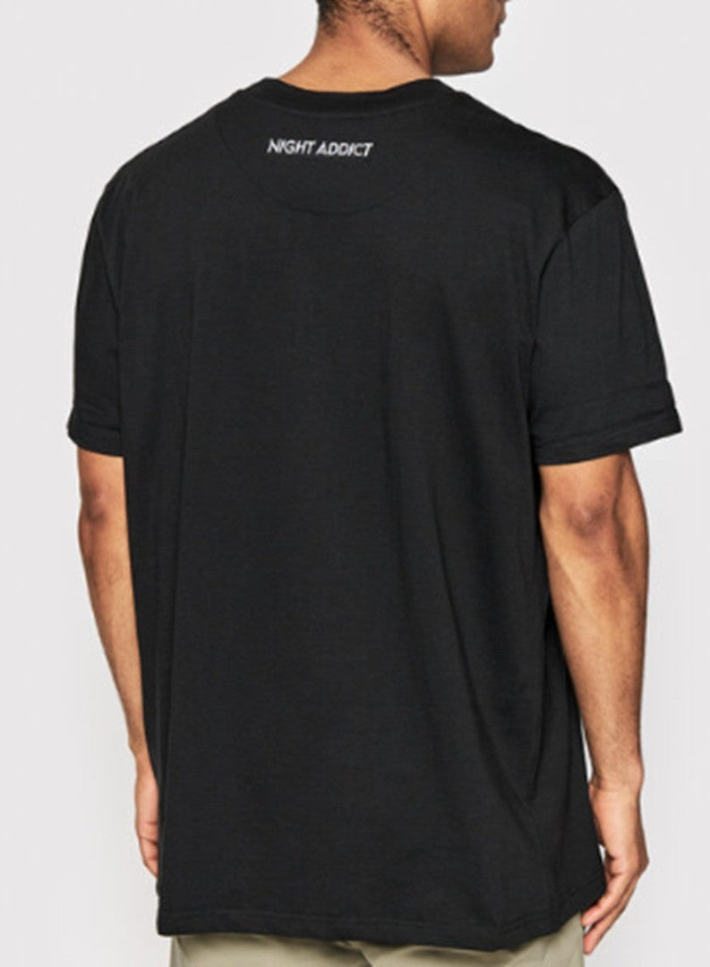 NIGHT ADDICT Mens T-Shirt Black with White Embroidery, Size: XL