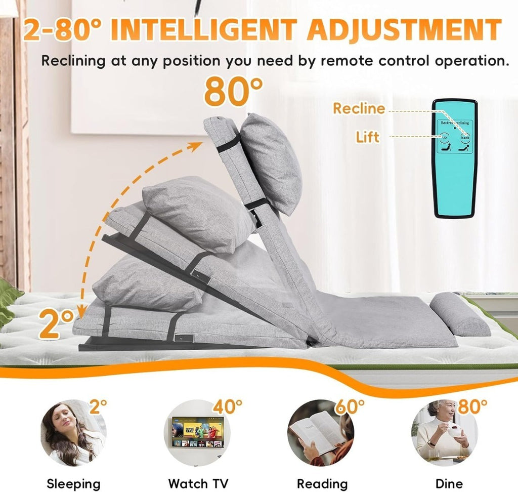 Electric Lifting Backrest for Bed with Pillow & Remote