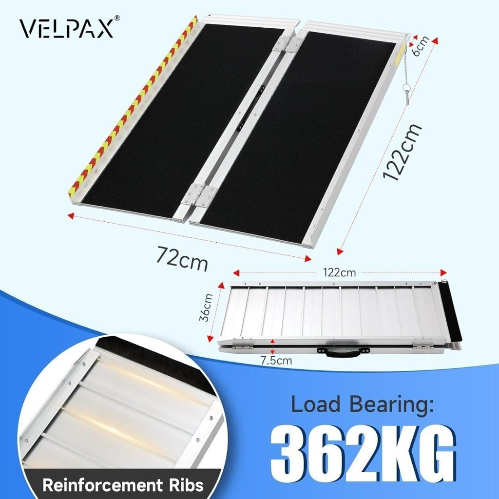 Versatile Usage: With a maximum load capacity of 362kg, this ramp is suitable for a wide range of uses — including manual and electric wheelchairs, pushchairs, mobility scooters, and trolleys. It ensures safe, stable access in homes, vehicles, and public spaces.