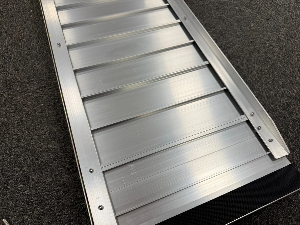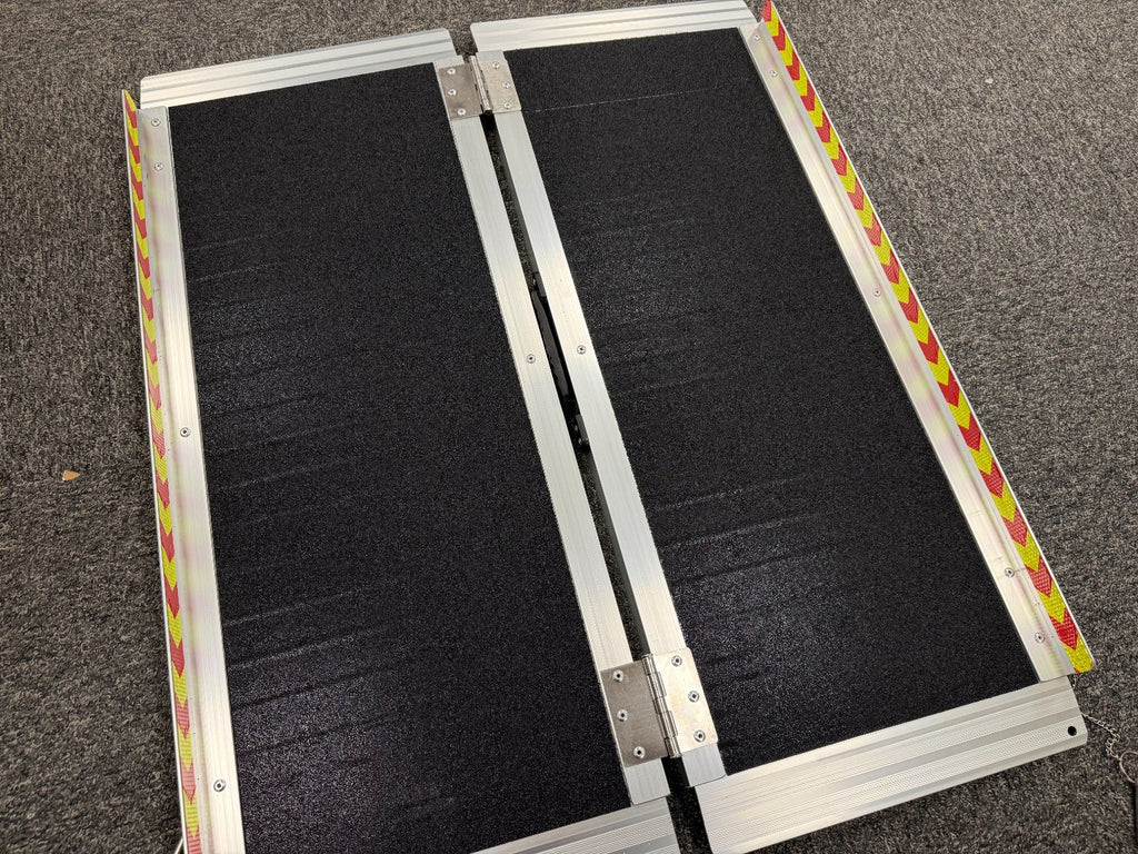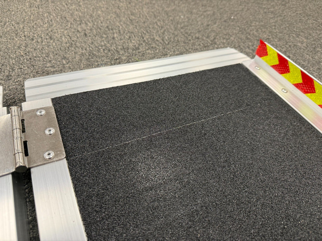 Enhanced Safety Features: Safety comes first with reflective warning strips on both sides for greater visibility, especially in low light. Additional elements like locking pins and sturdy hinges improve the ramp's overall strength and reliability.