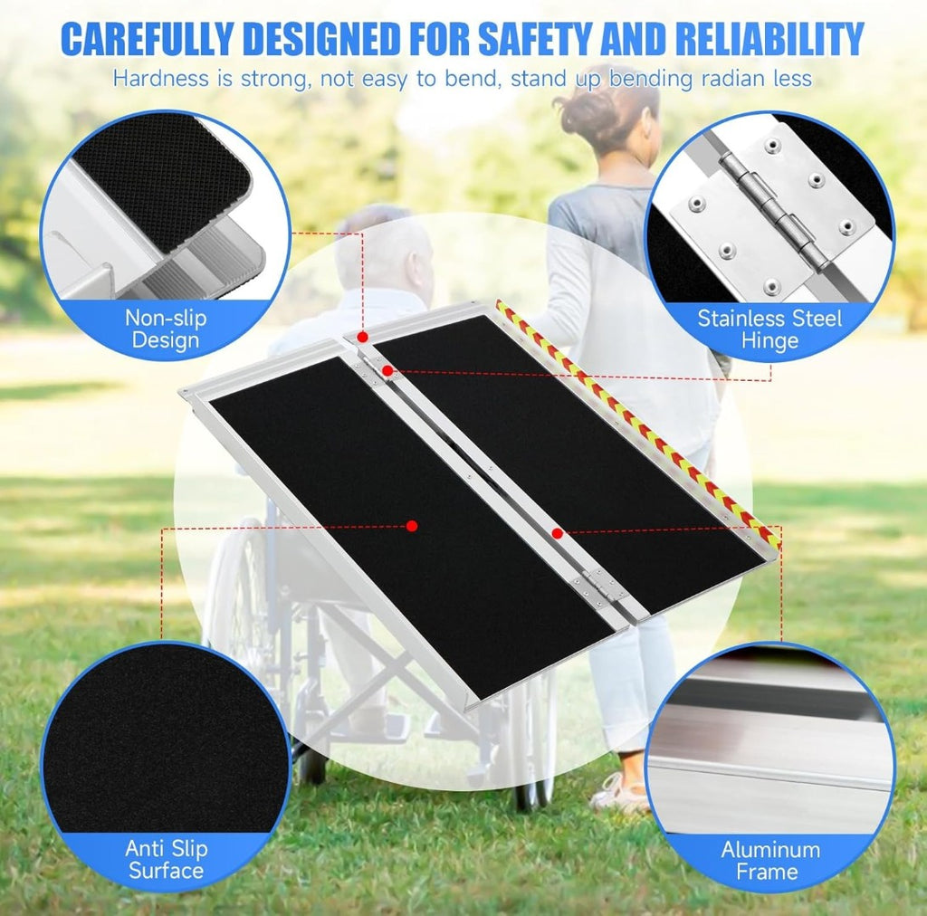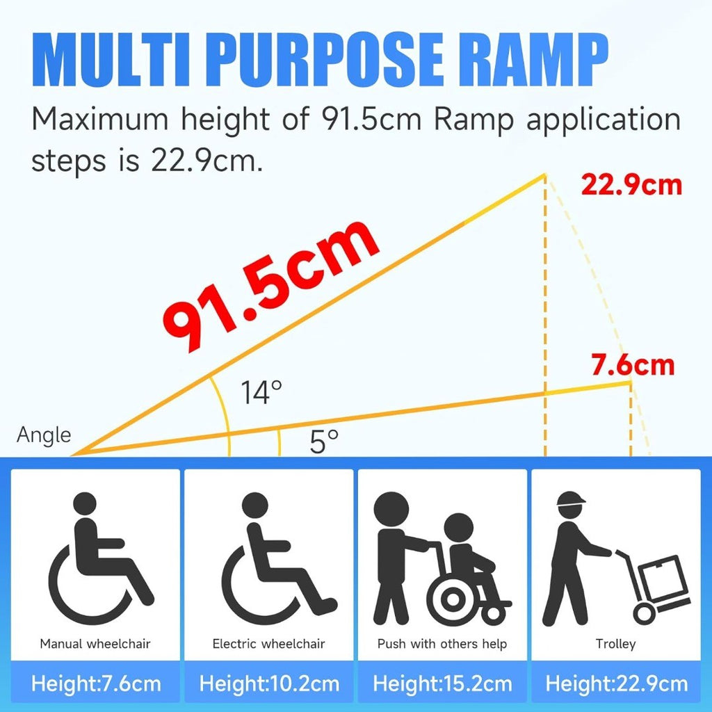 Foldable & Easy to Carry: Designed with convenience in mind, the ramp folds easily into a compact form for simple storage and effortless transport. Whether you're heading out or staying in, you can bring reliable access with you wherever it's needed.