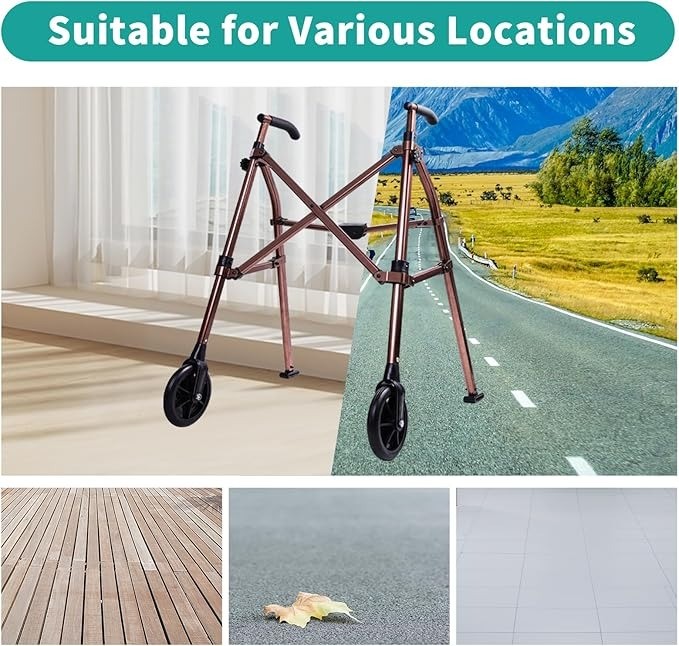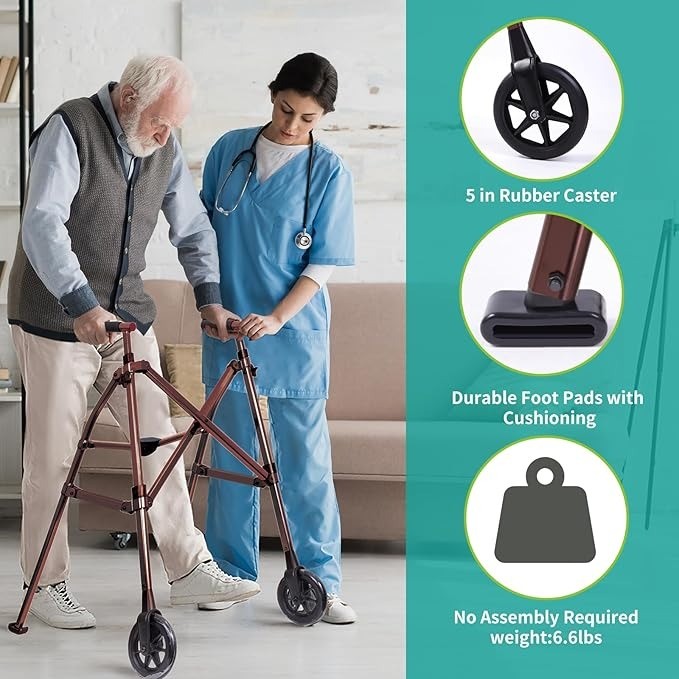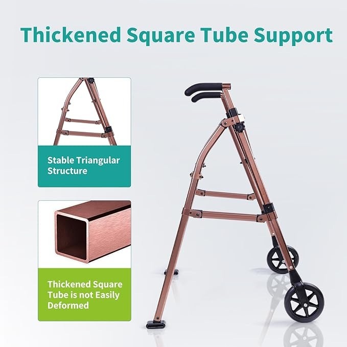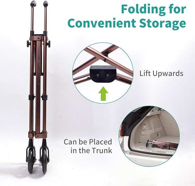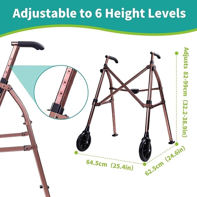 LEFEKE Lightweight Folding Walking Frame with Wheels Brown