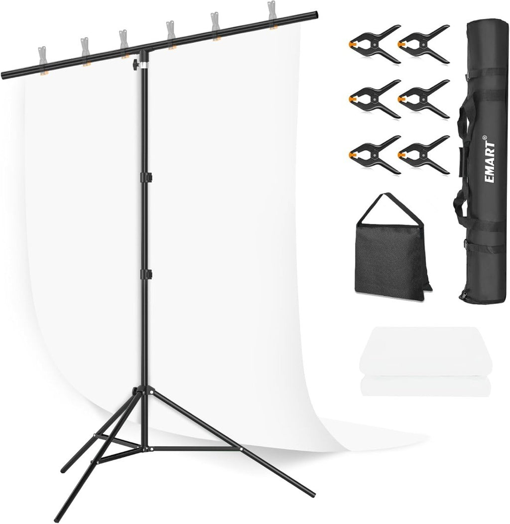 EMART White Backdrop with Stand, 1.5x2m Photography Screen with 2x2m Background Frame Kit for Photo Video Studio, include 6 Spring Clamps and 1 Sandbag