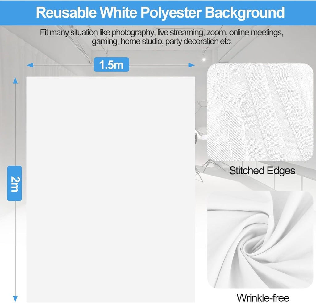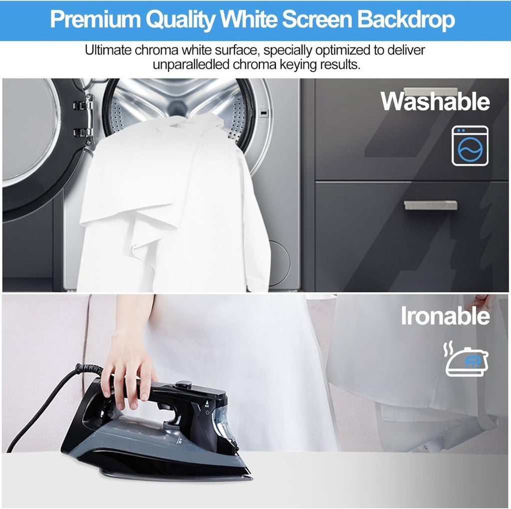 Professional White Backdrop for Photography: Made of 100% high-quality polyester fabric, the backdrop is completely seamless and offers excellent shooting results. White background is washable, ironable, foldable, durable, lightweight, and offers a good vertical feeling