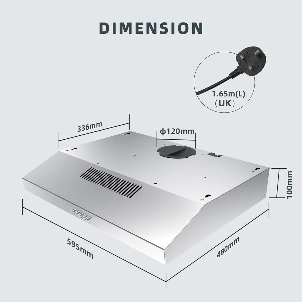 FIREGAS 60 cm Visor Cooker Hood with Brushless Motor, Stainless Steel Extractor Hood 600mm, Under Cabinet Hood, Wall Mounted Extractor,Recirculation/Extraction [Energy Class A]