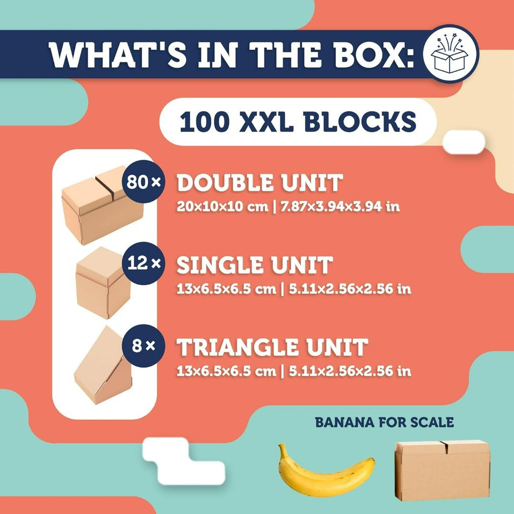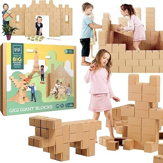GIGI Bloks 100 XXL Large Building Blocks for Kids Stackable & Interlocking Children's Cardboard Building Bricks, Sturdy and Easy to Assemble Creative & Educational Real-Size Kids' Construction Toys