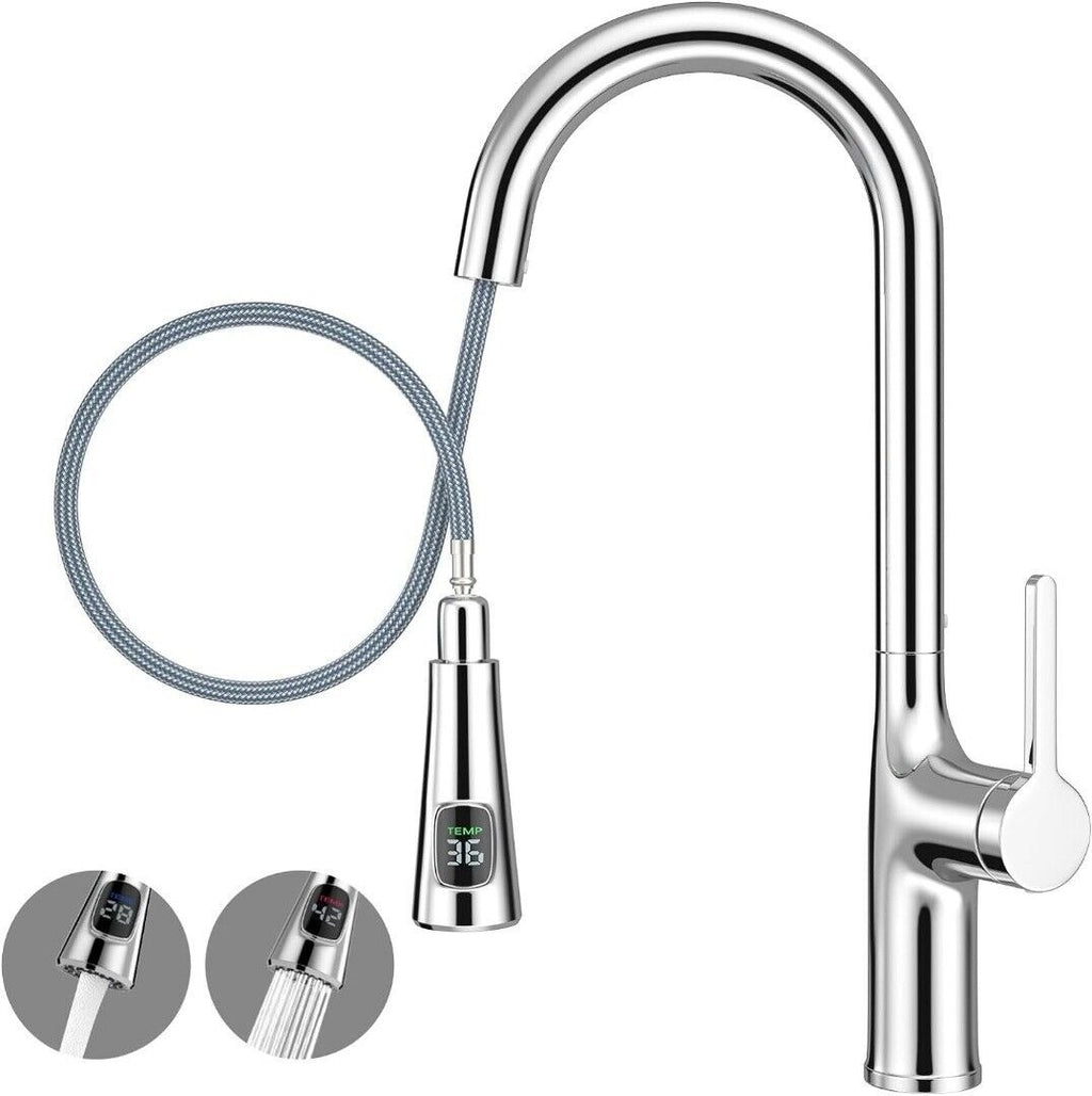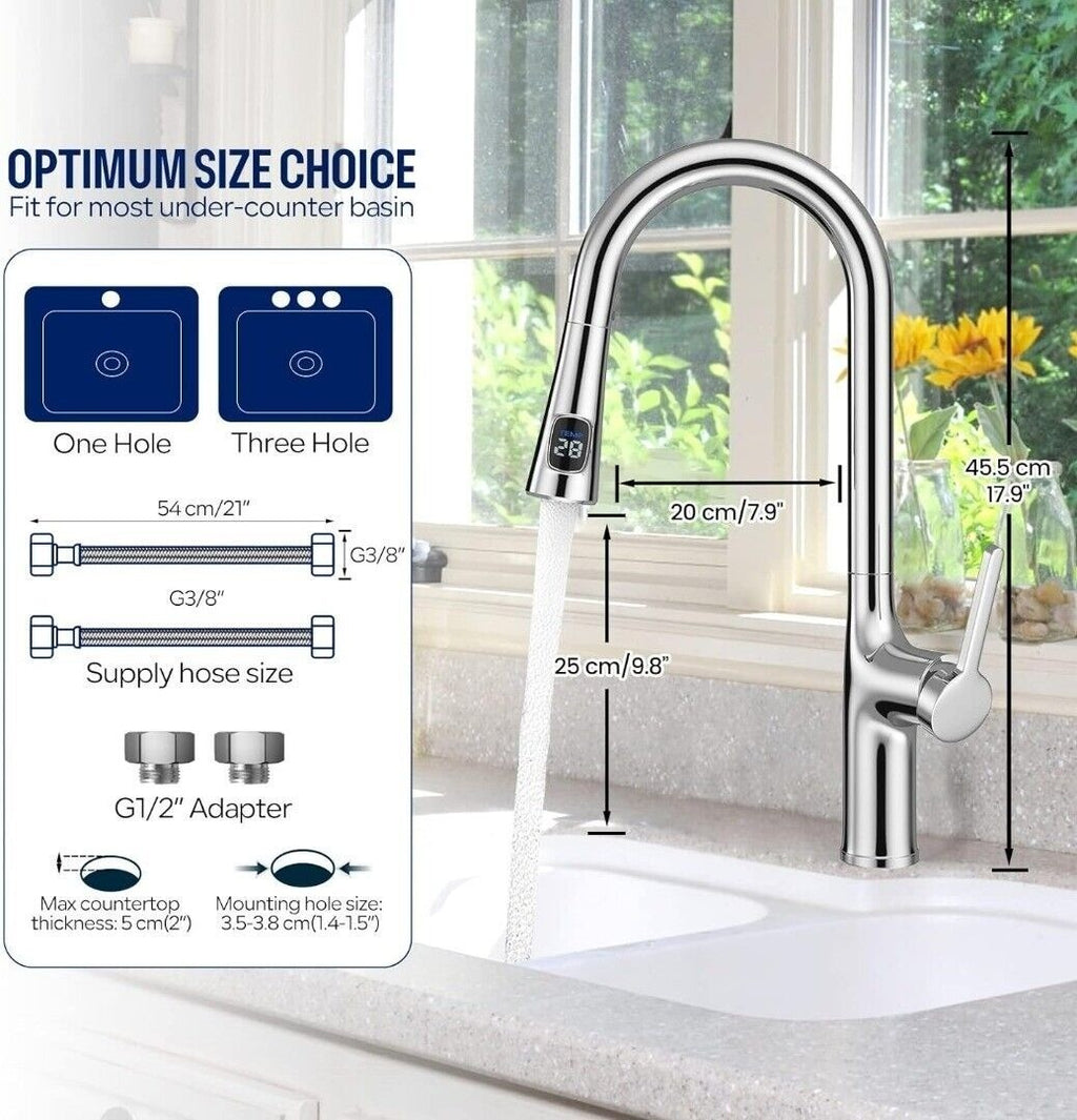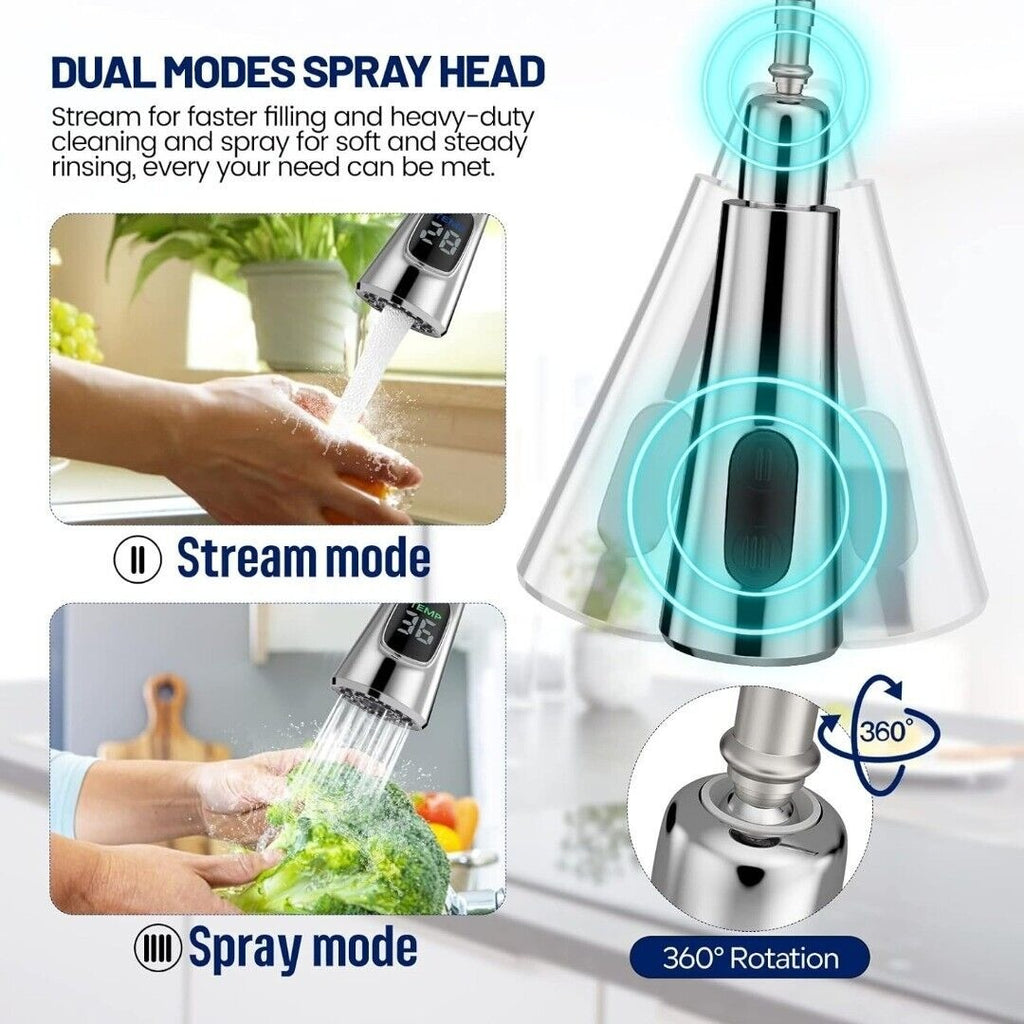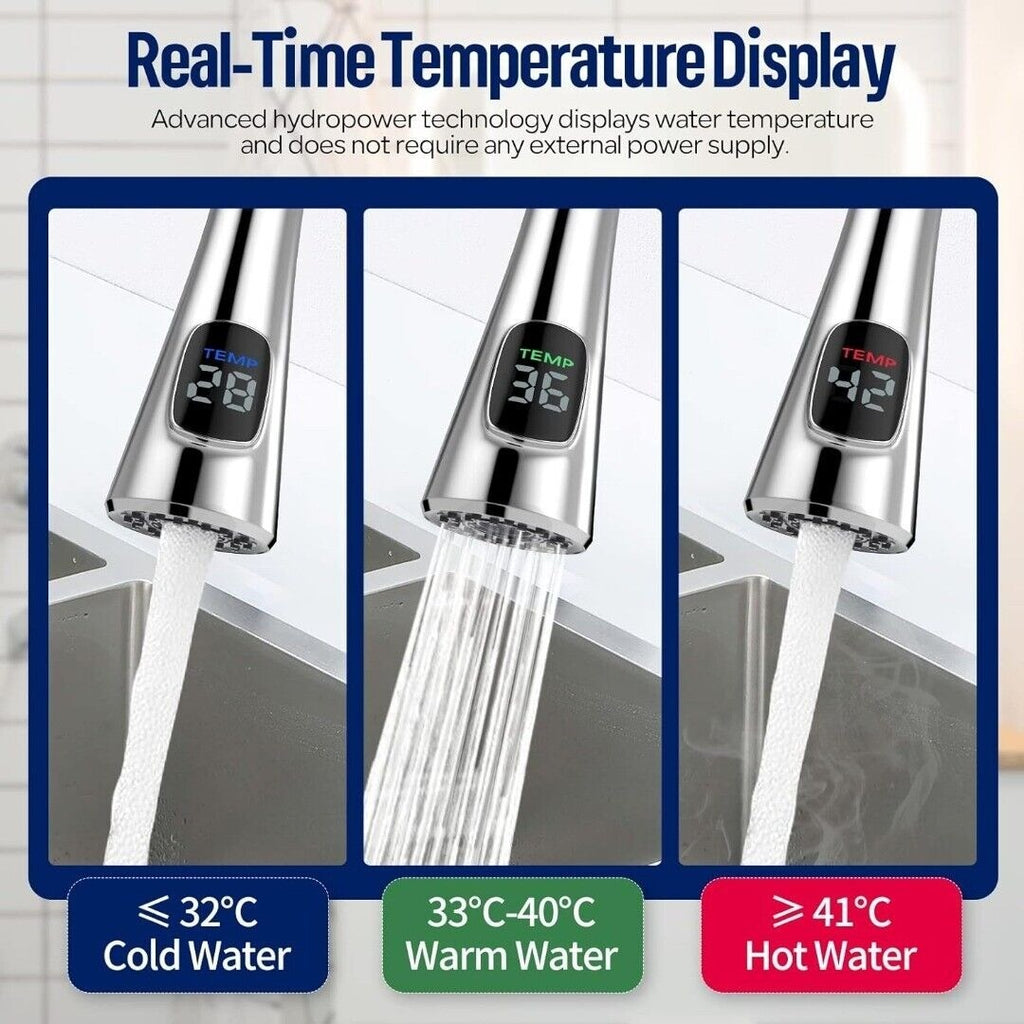 Pull Out Sprayer, Pull Down Sprayer, Temperature Display, 360 Swivel, Lead Free