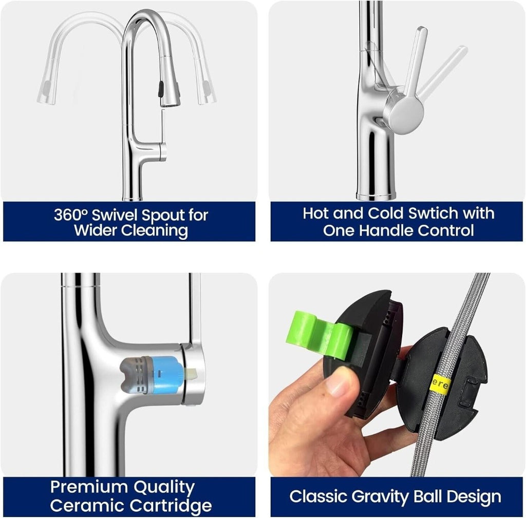 User Friendly The single lever control allows you to control the water flow and temperature with just one hand, making it both simple and safe to use. Every kitchen faucet comes with pre-assembled hot and cold water pipes, quick-connect fittings, and installation instructions that you can DIY the taps for kitchen sink replacement without a plumber.