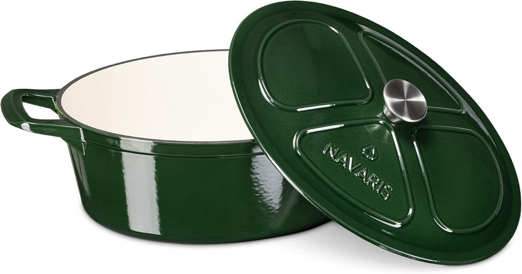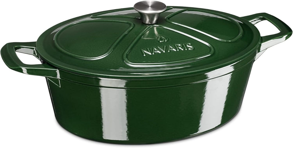Navaris Enamelled Casserole Dish - 7.7 Litre Cast Iron Oven Dish Pot with Lid for Cooking - Gas, Induction Safe Non-Stick Dutch Oven - Green