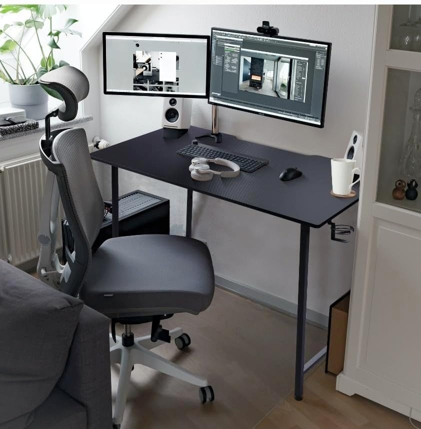 Small Computer Desk Carbon Fibre 80cm Black