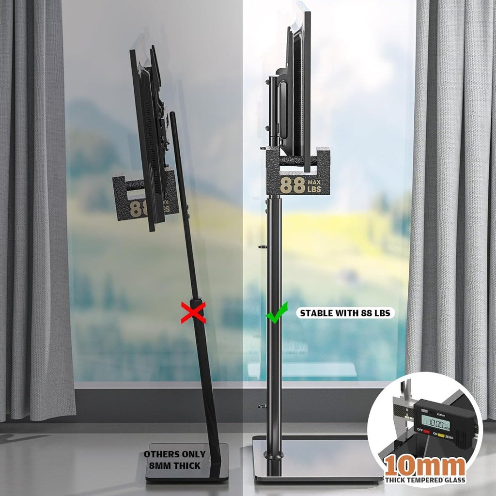 Floor Universal TV Stand with Mount – 80° Swivel, Height Adjustable & Tilt, Fits 27–65" LCD/LED/OLED TVs (HT1002B)