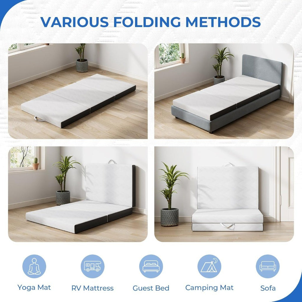 Vesgantti Folding Mattress Single Size, 10CM Gel Memory Foam Foldable Mattress Tri-fold for Travel, Camping, Guest Bed, CertiPUR-US Certified