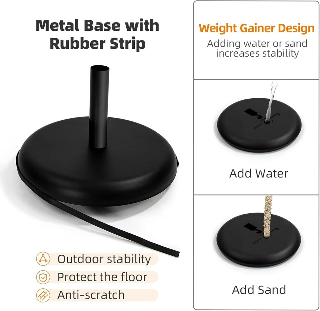 Stable Base: water and sand can be added to the rubber base of our Display Stand to increase its weight and keep balance. The rubber strip is supplied with the base to protect the floor. (If any part is damaged, it can be replaced.)
