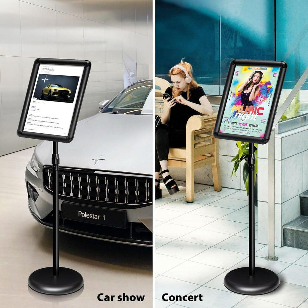 Widely Used: Floor Sign Stand can stand stably both indoors and outdoors. Well suited for trade exhibitions, foyer, reception areas, showrooms, restaurants, shopping malls, offices, schools and other public places; Display signs, posters, pictures, notices, etc.